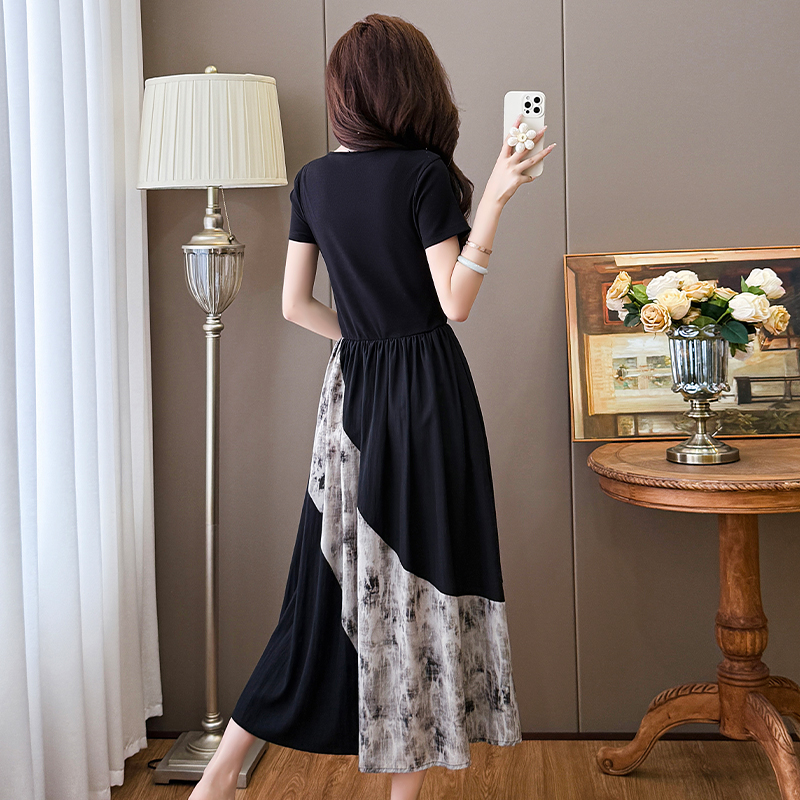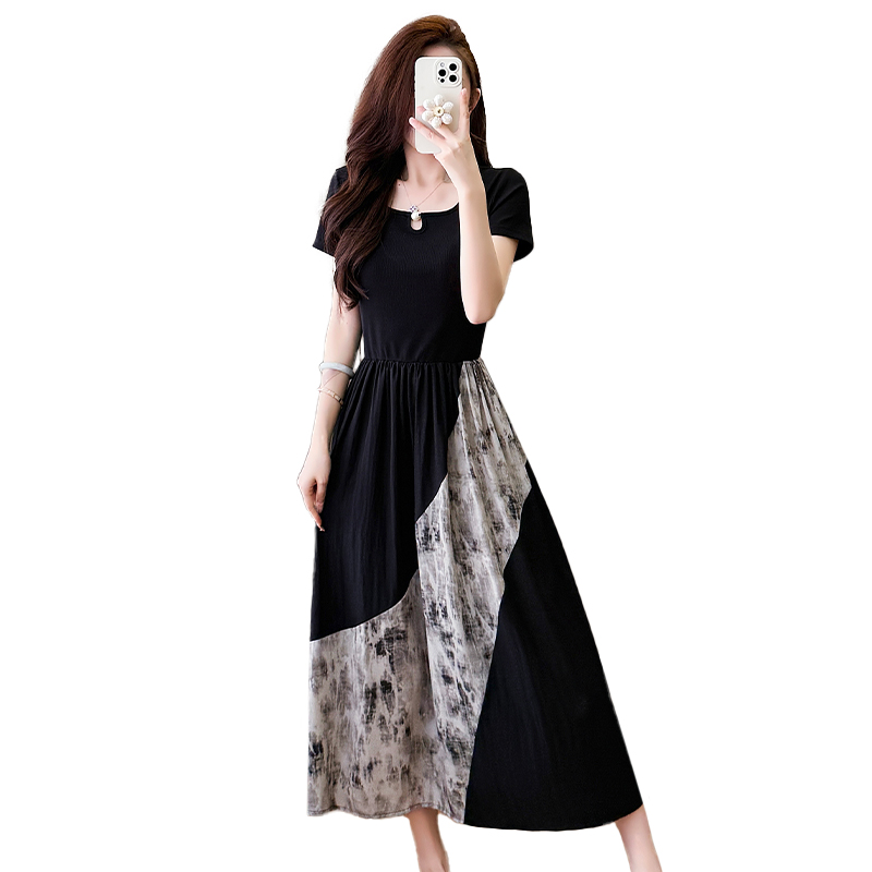 Home > 短袖连衣裙、夜店装 > BY13714# 夏季新款中式国风拼接时尚显瘦中长款A版连衣裙女 服裝批發女裝批發服飾貨源