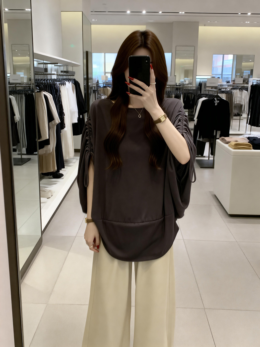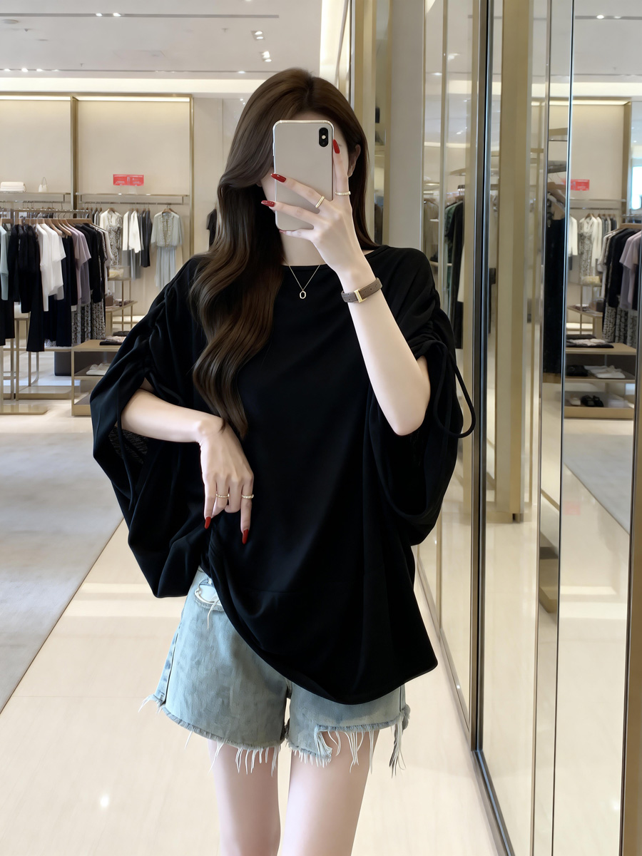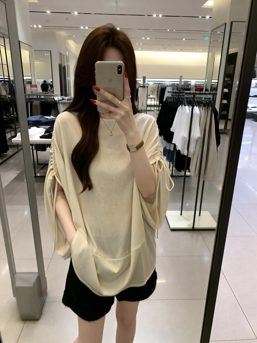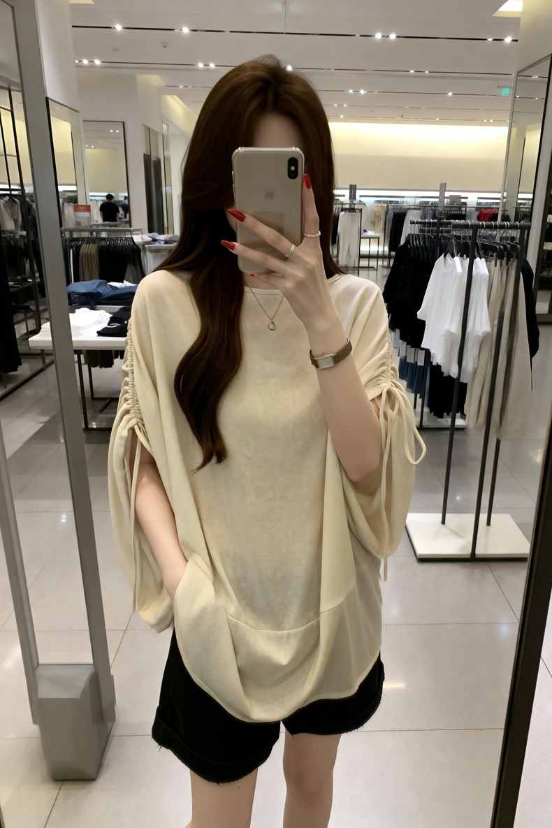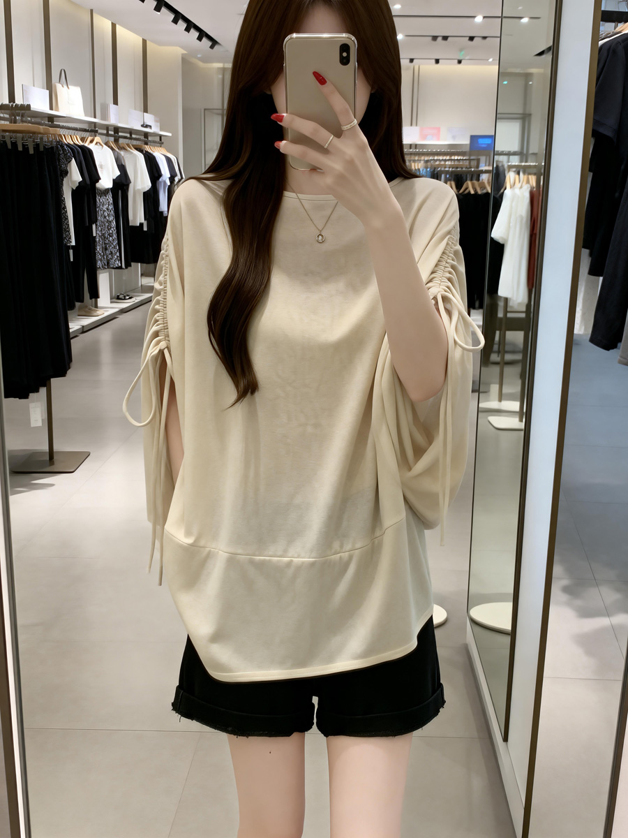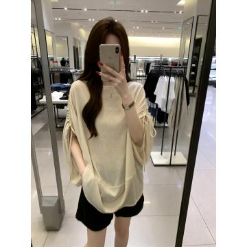 BY13746# 夏季新款抽绳个性设计慵懒风针织T恤女大码宽松百搭上衣 服裝批發女裝批發服飾貨源