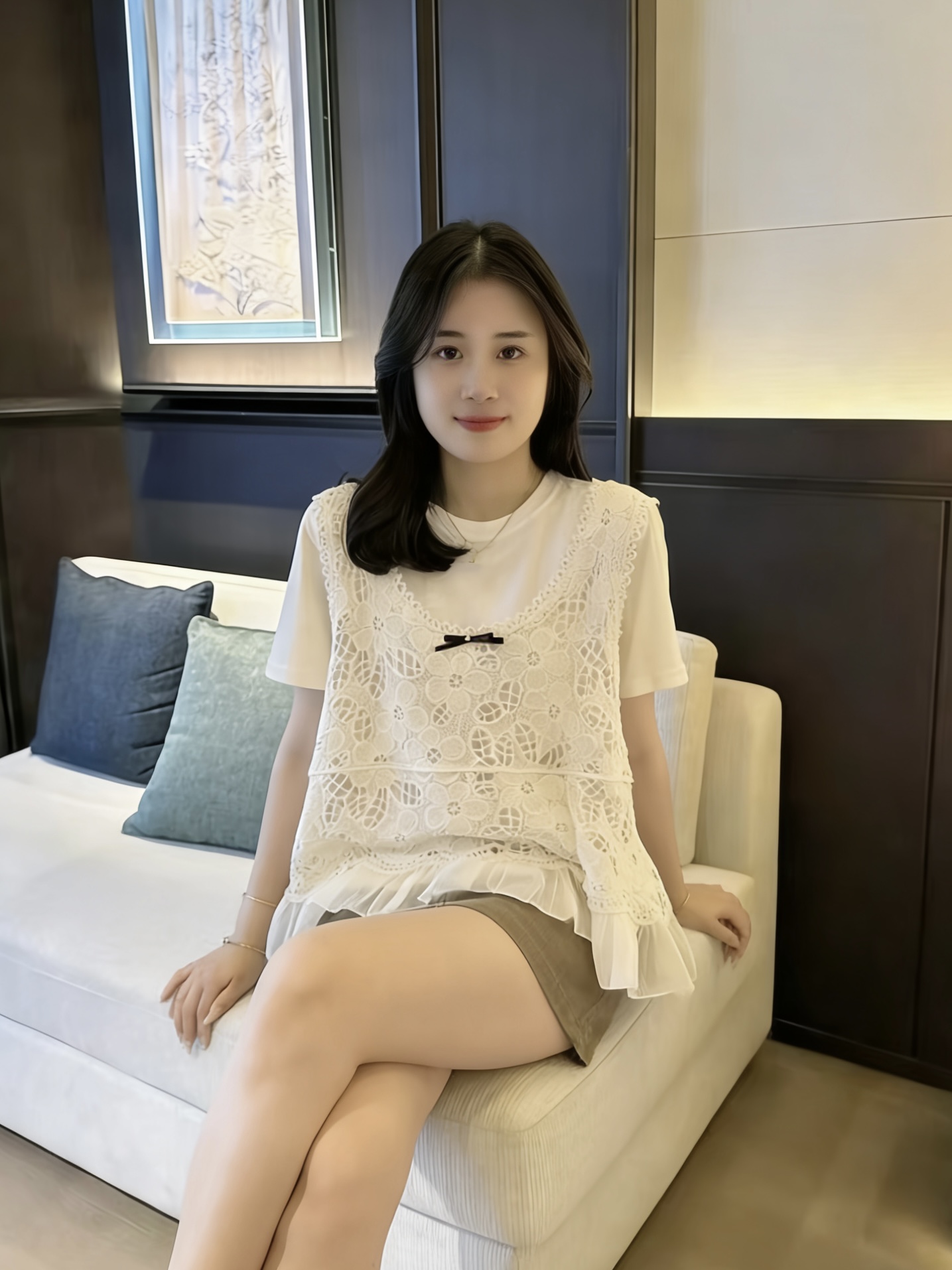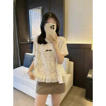 BY13757# 镂空蝴蝶结针织马甲背心女夏季新款内搭圆领短袖上衣 服裝批發女裝批發服飾貨源