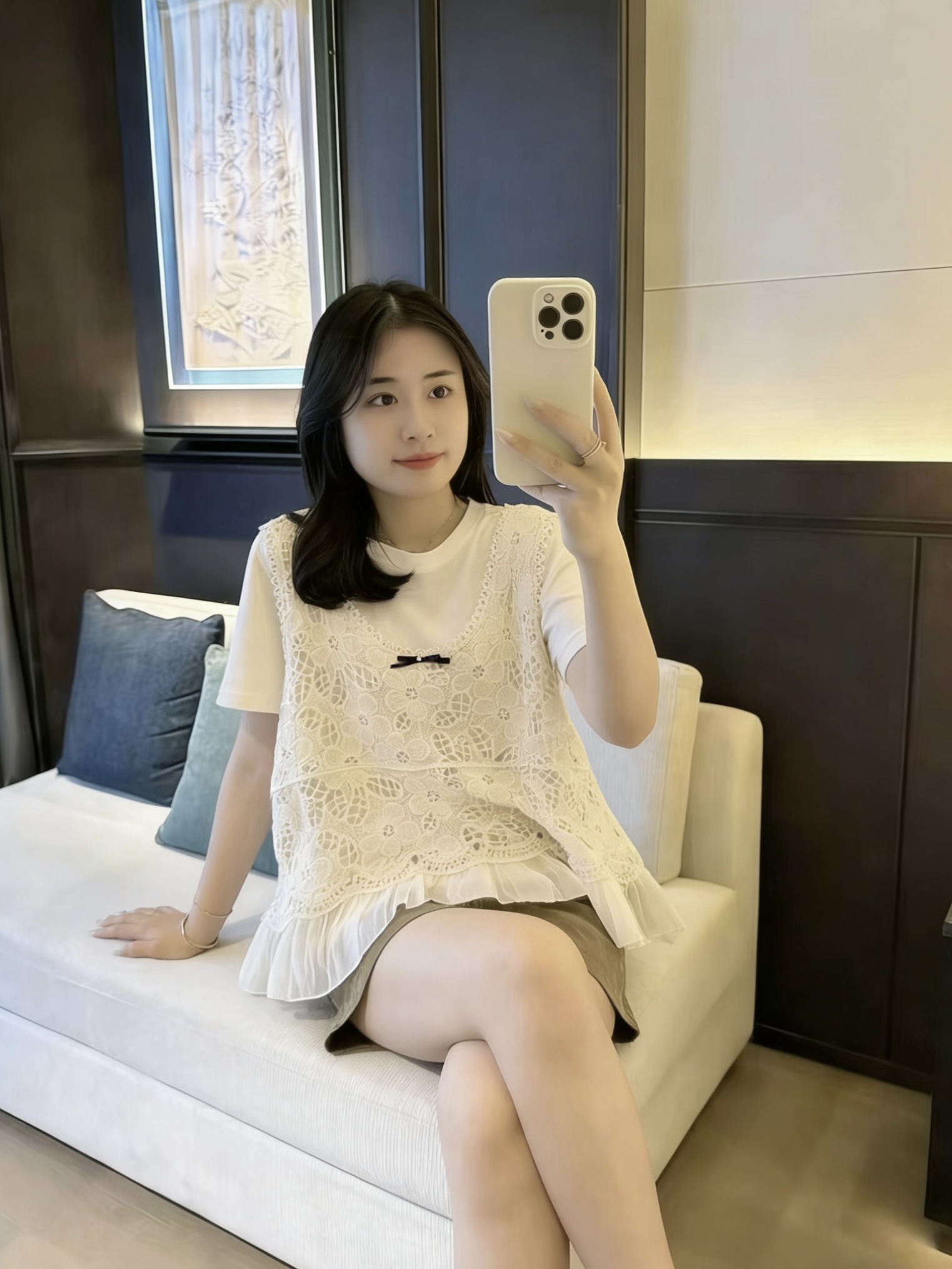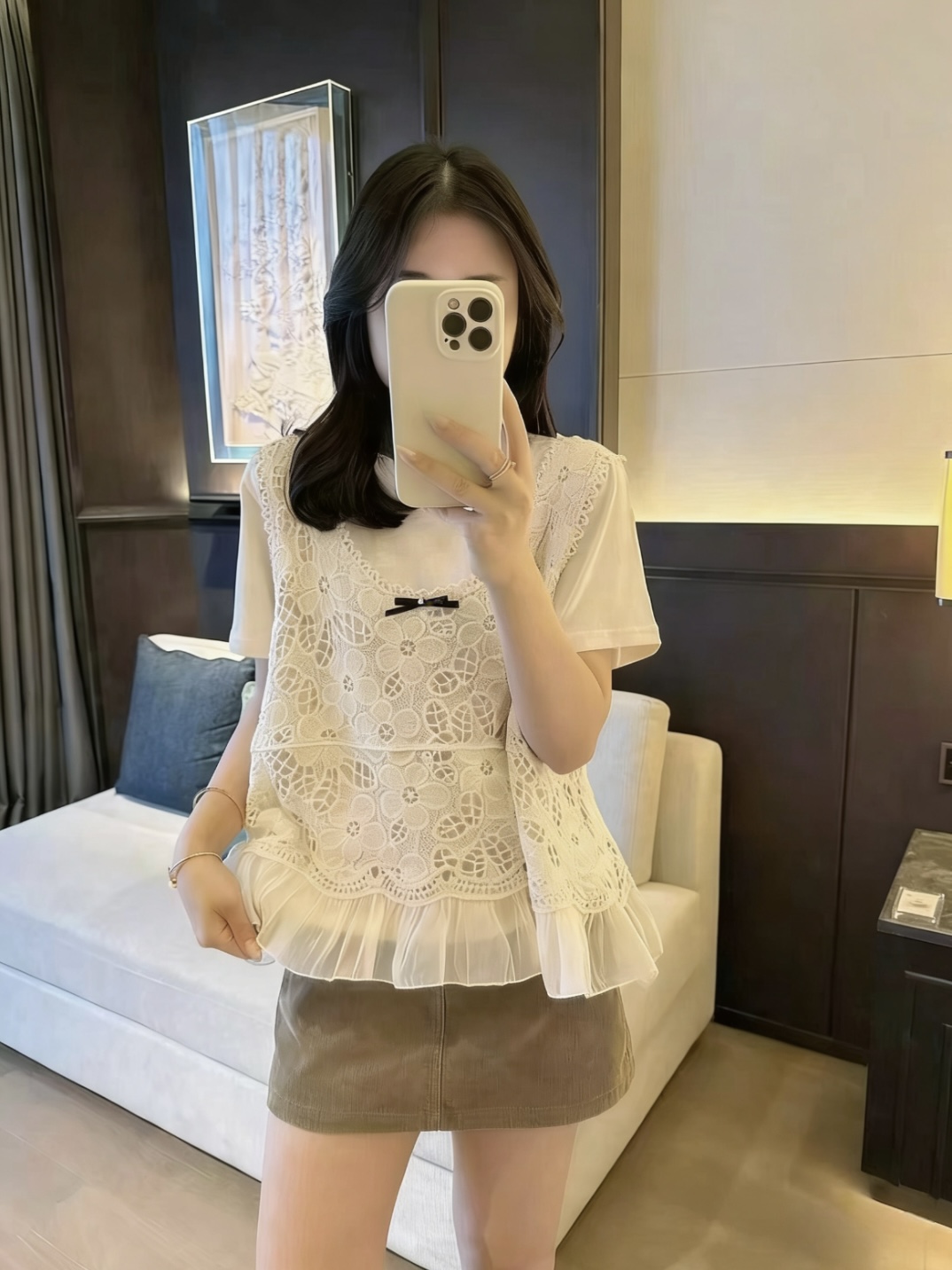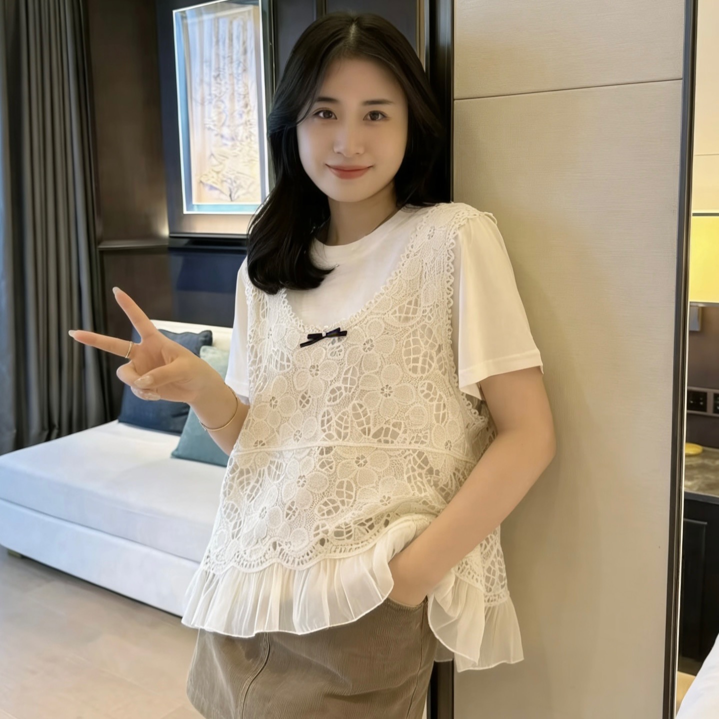 米白色罩衫+T恤