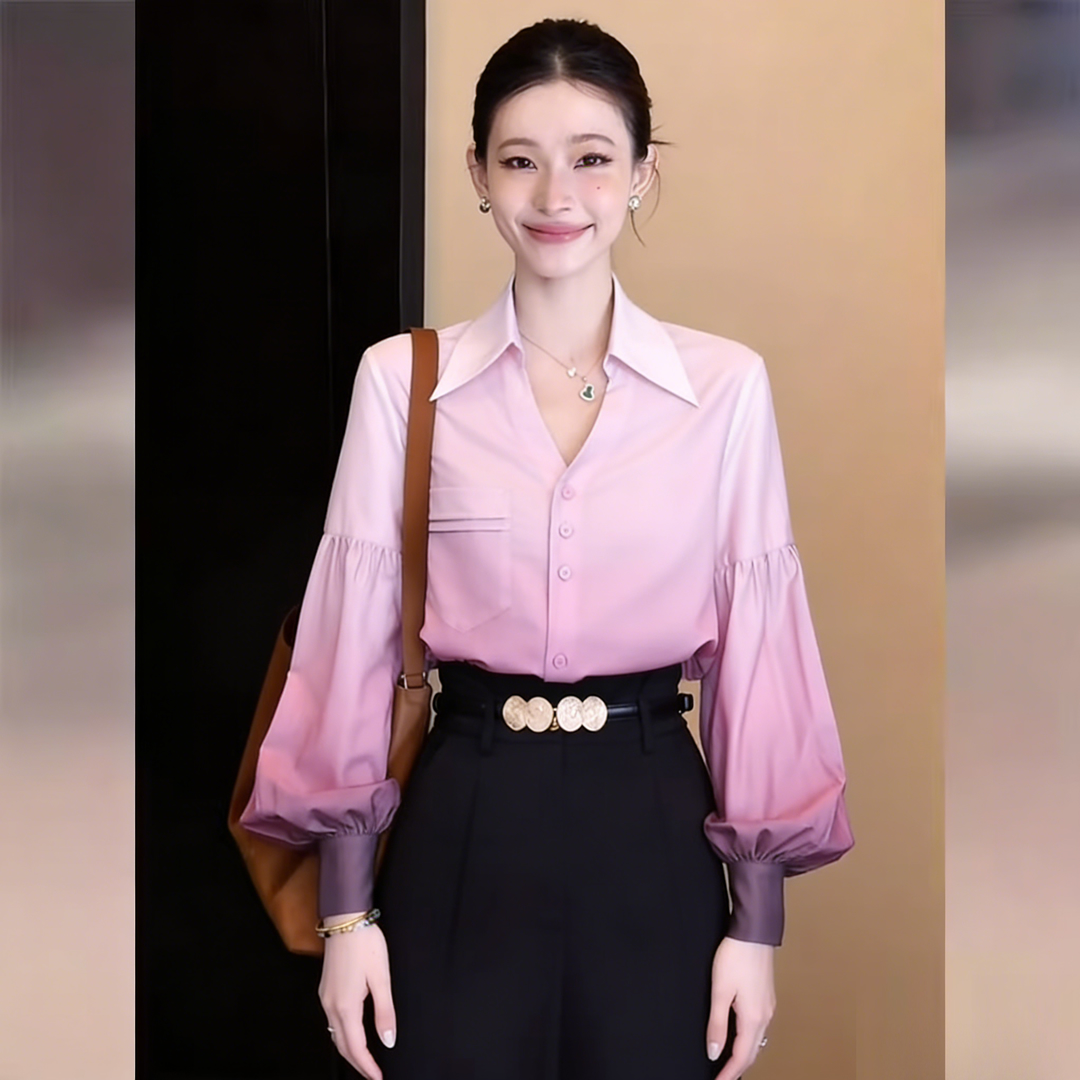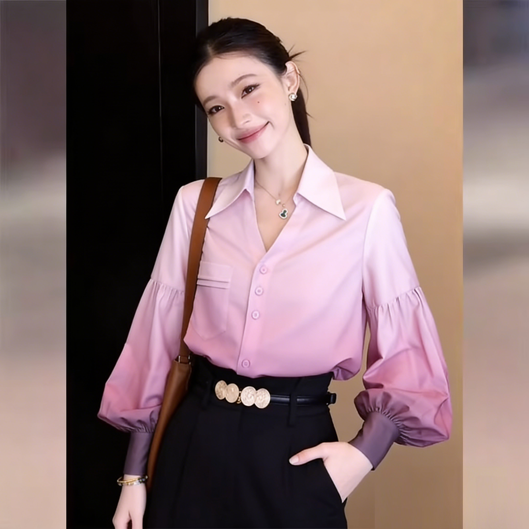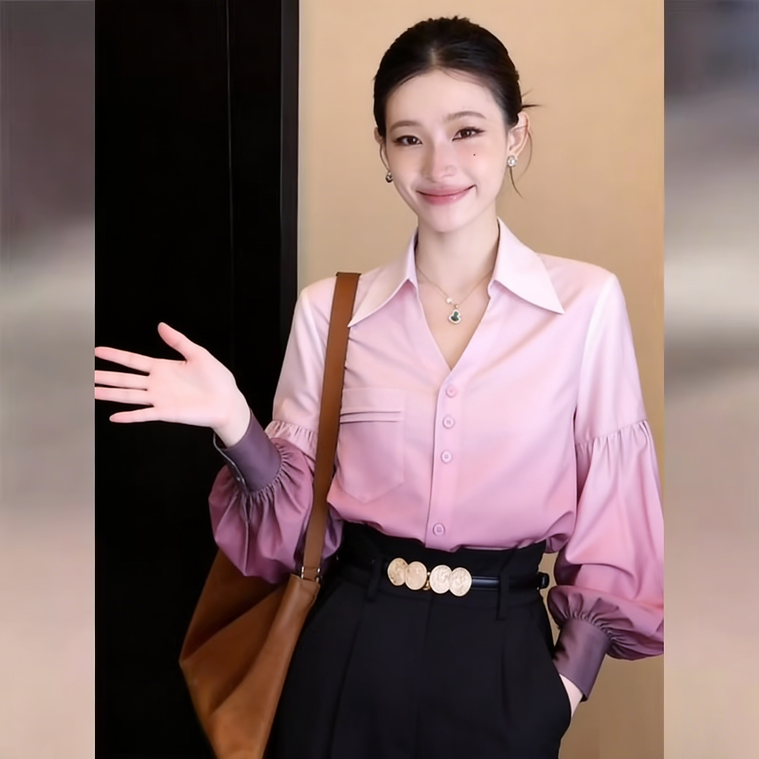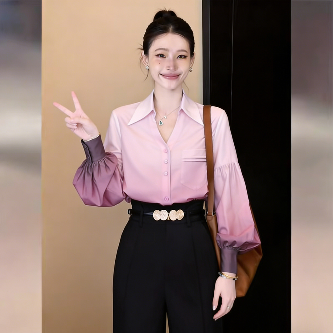 BY13765# 韩式通勤设计感气质渐变色长袖衬衫春宽松百搭上衣 服裝批發女裝批發服飾貨源