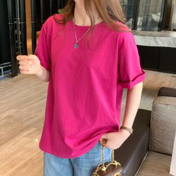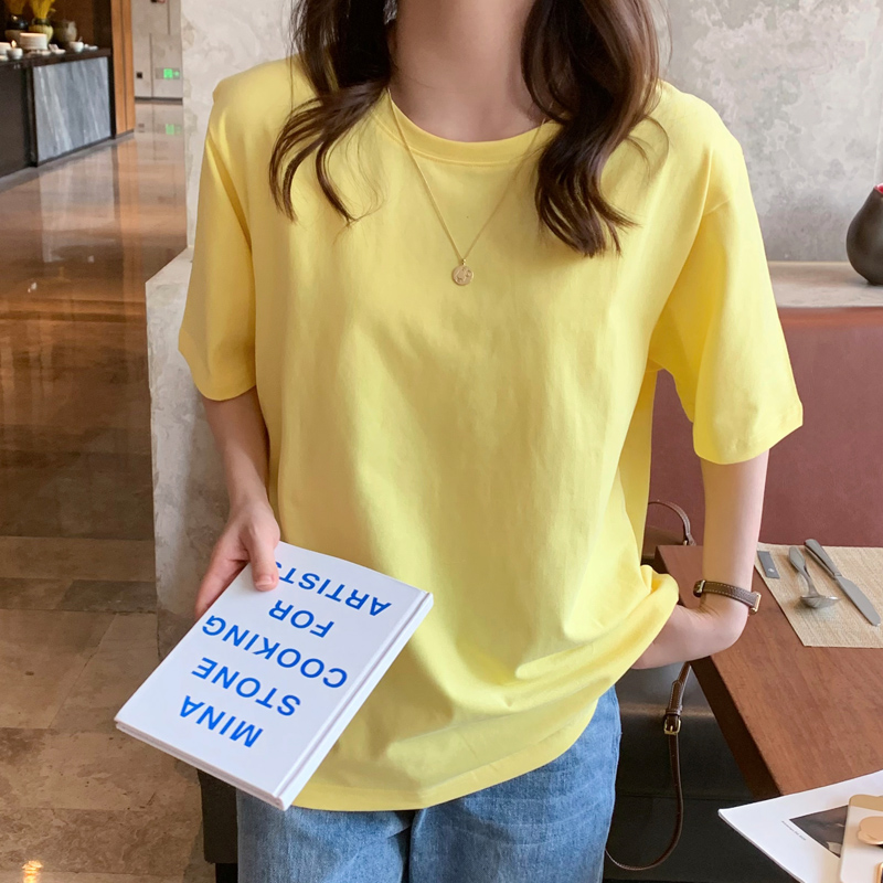 BY13771# 基础款短袖t恤chi港风女年夏季新款宽松中长款纯色百搭纯棉半袖 服裝批發女裝批發服飾貨源