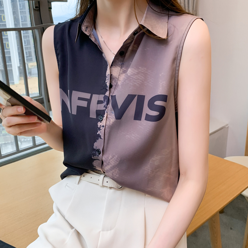 BY13773# 洋气夏季撞色坎肩背心女外穿衬衫无袖雪纺打底衫内搭上衣 服裝批發女裝批發服飾貨源