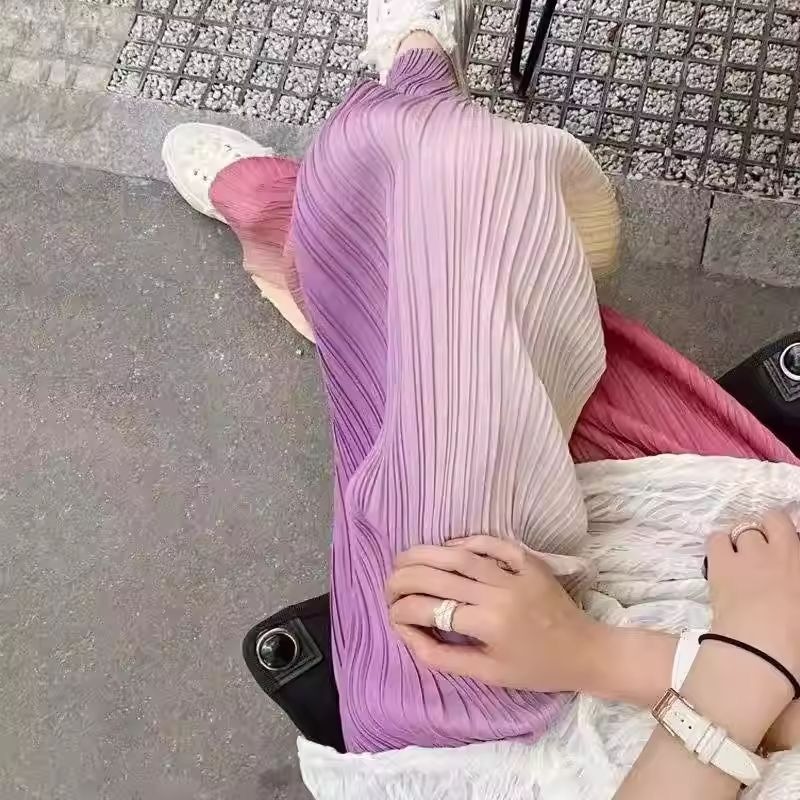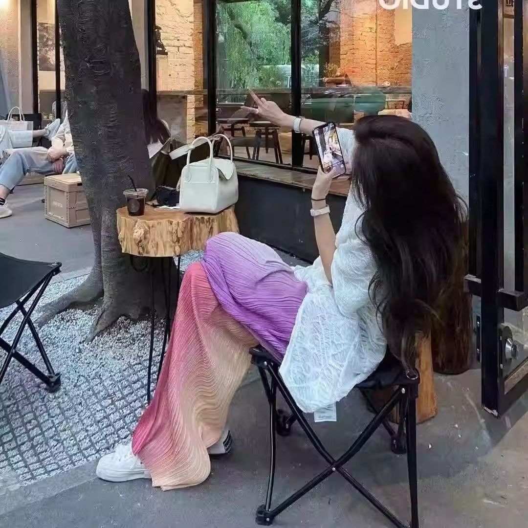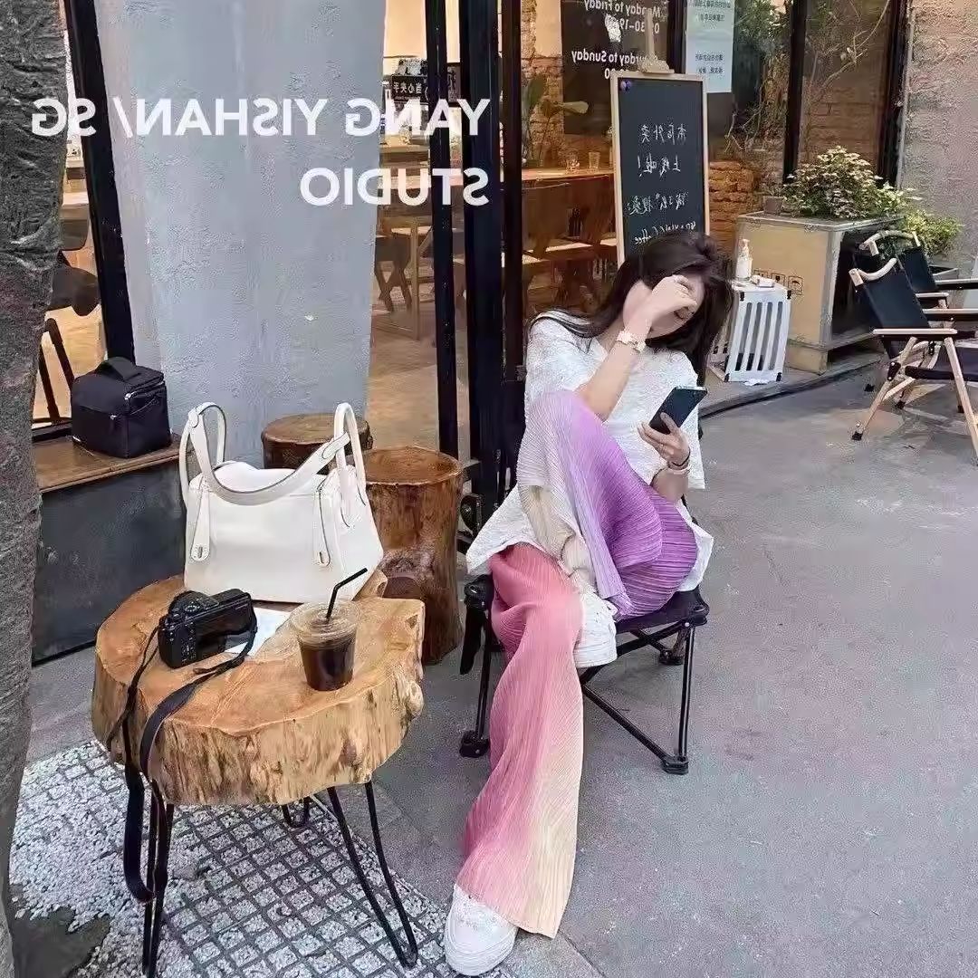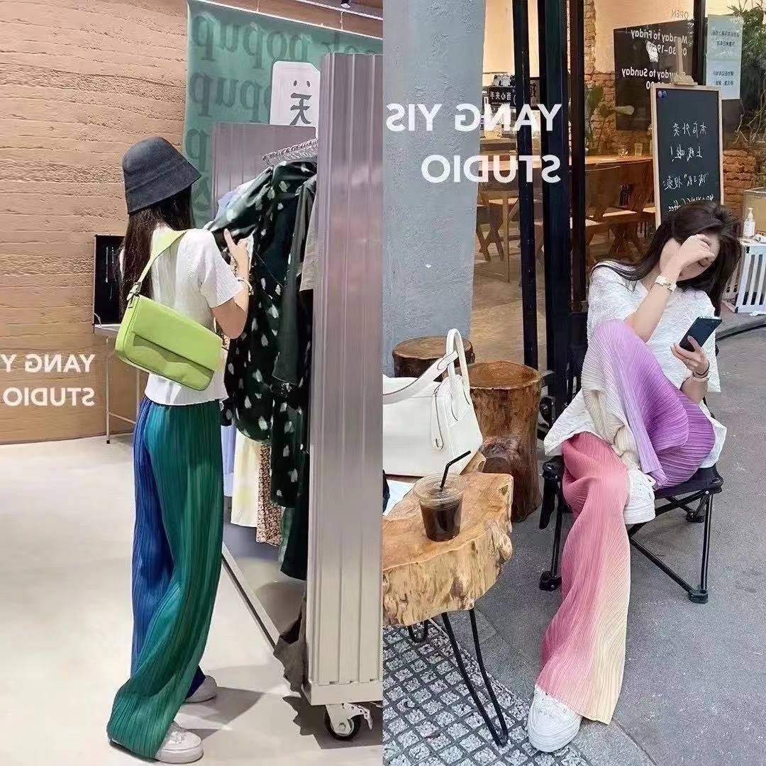 BY13793# 冰丝渐变裤子女夏季薄款垂感慵懒阔腿凉凉防晒海边沙滩雪纺裤休闲 服裝批發女裝批發服飾貨源