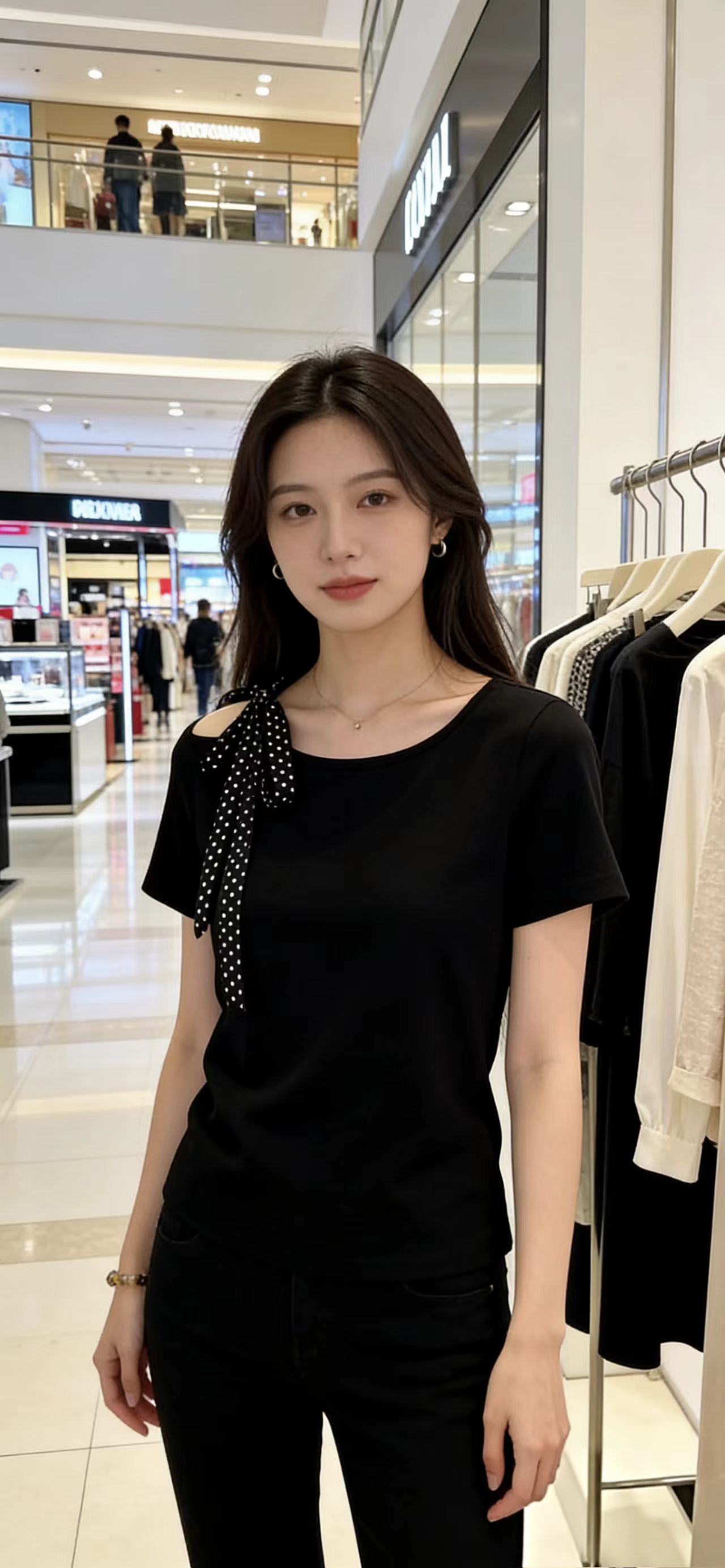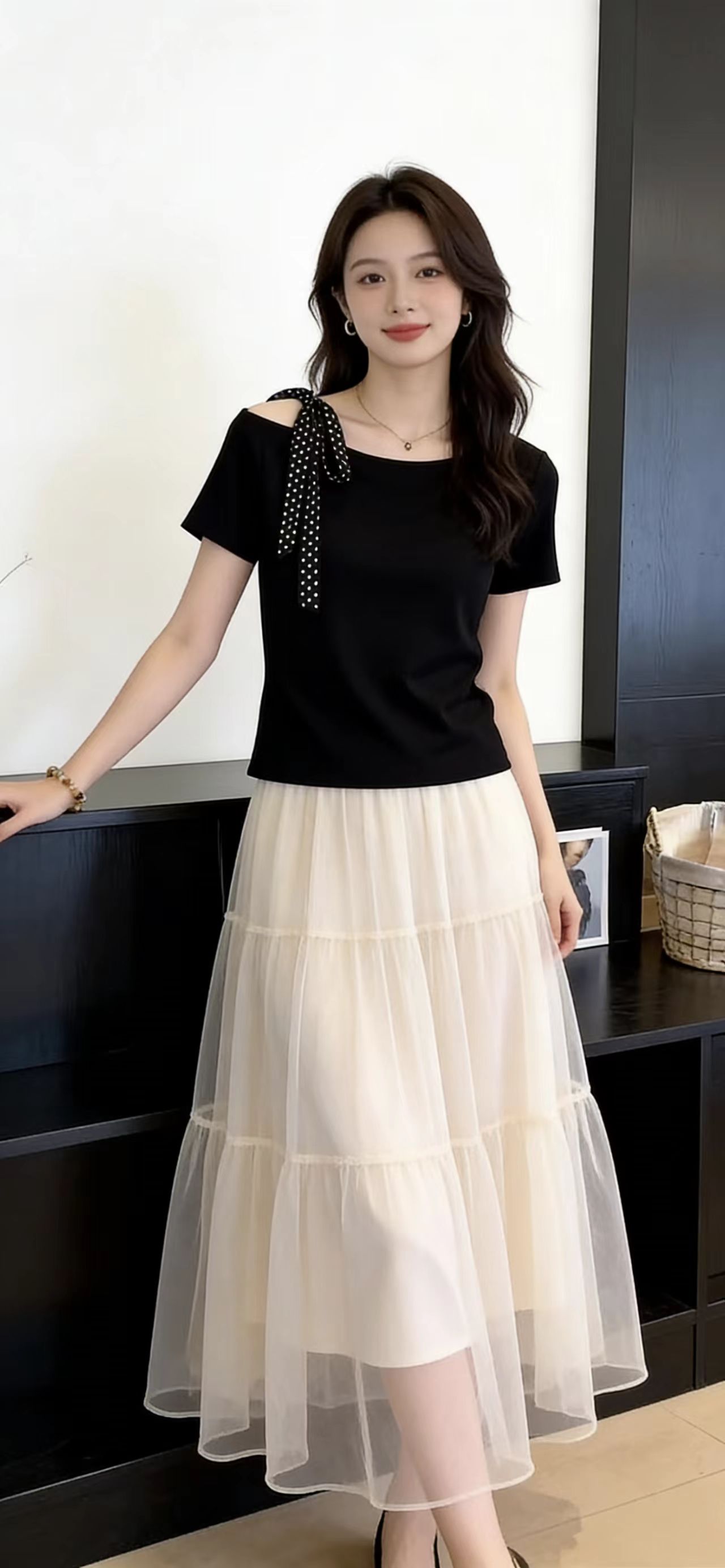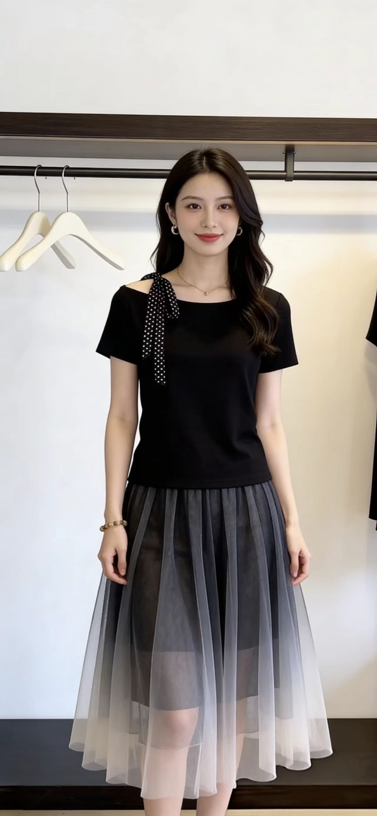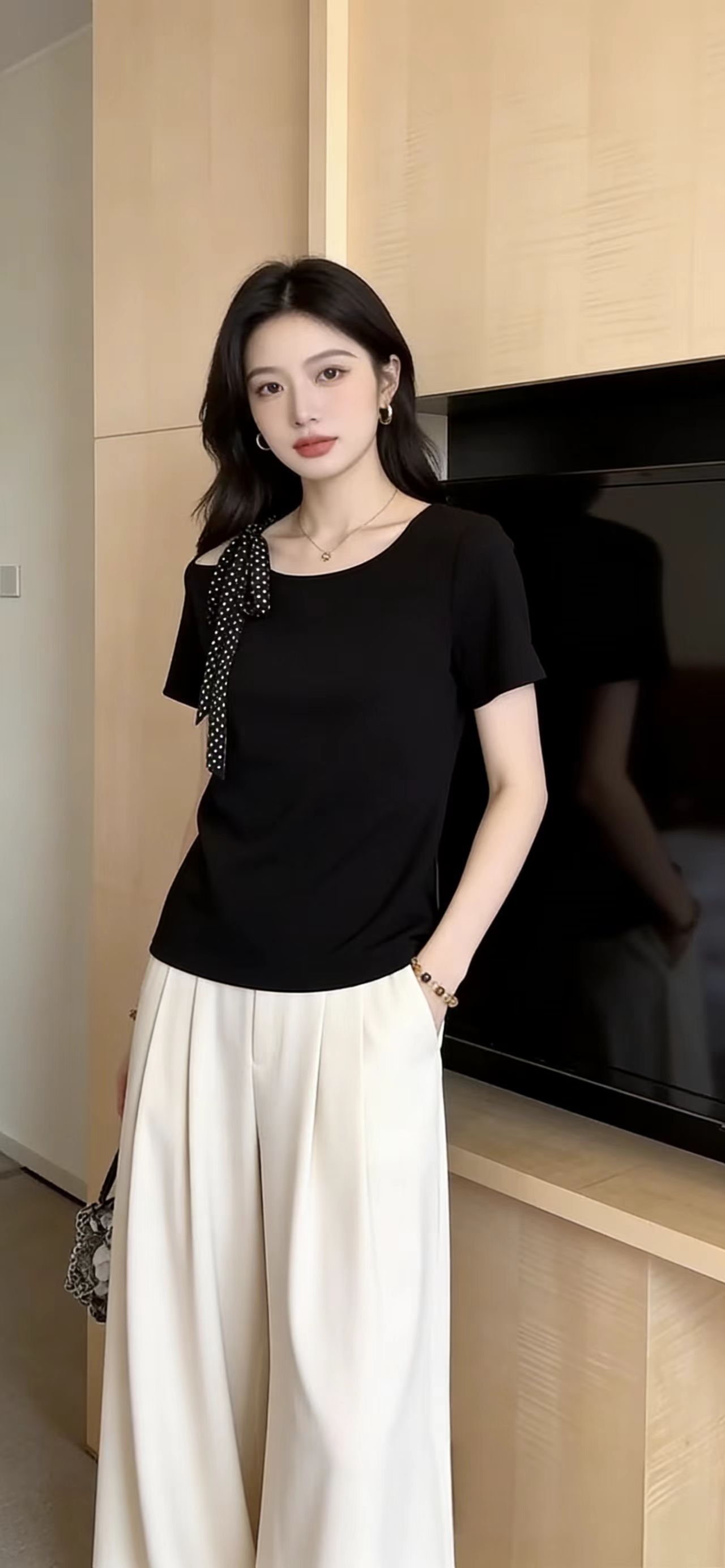 BY13809# 夏季新款法式大码女装设计感小众时尚气质上衣漂亮黑色短袖 服裝批發女裝批發服飾貨源