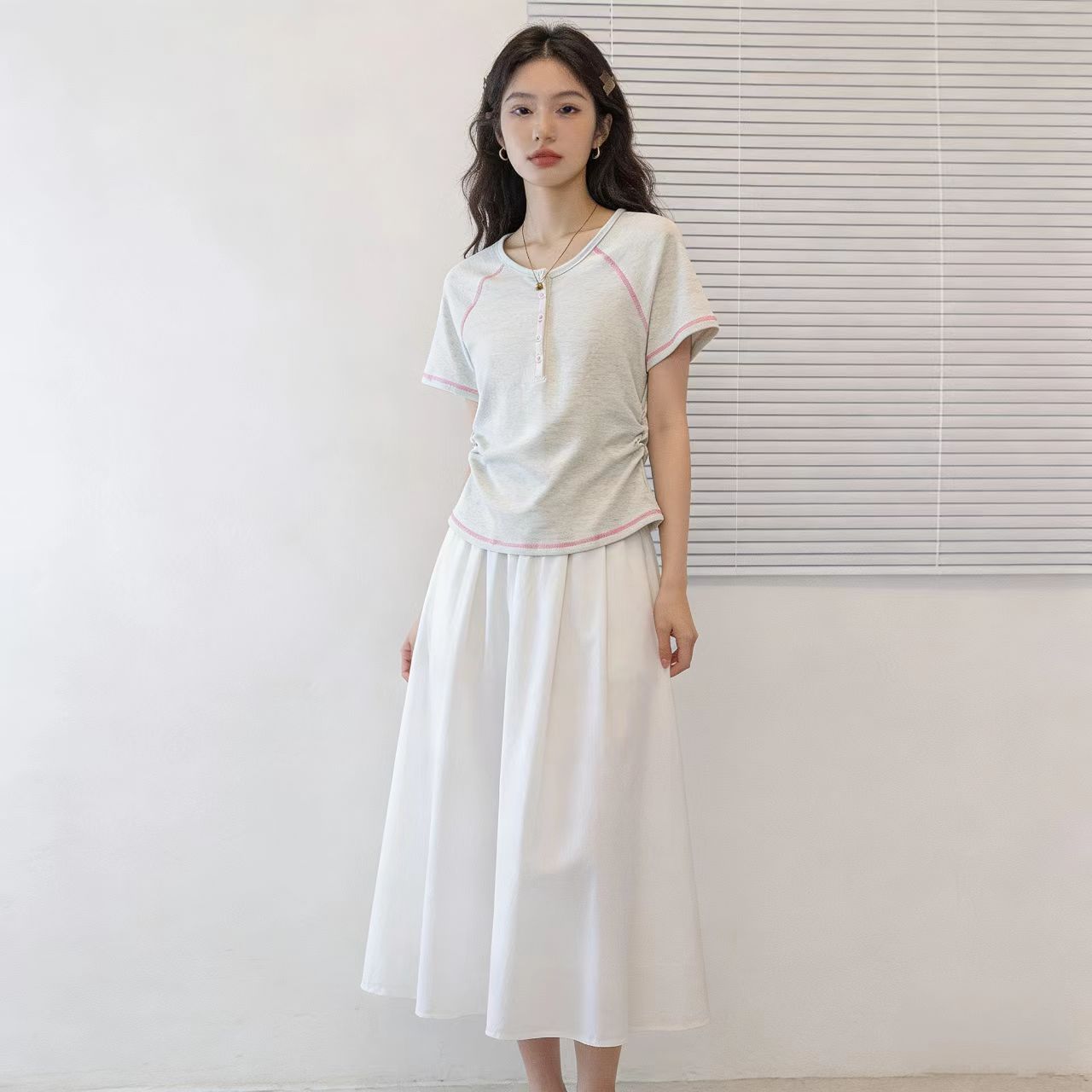 BY13813# 时尚大码女装夏季新款流行褶皱显瘦胖妹妹短袖t恤百搭通勤潮 服裝批發女裝批發服飾貨源