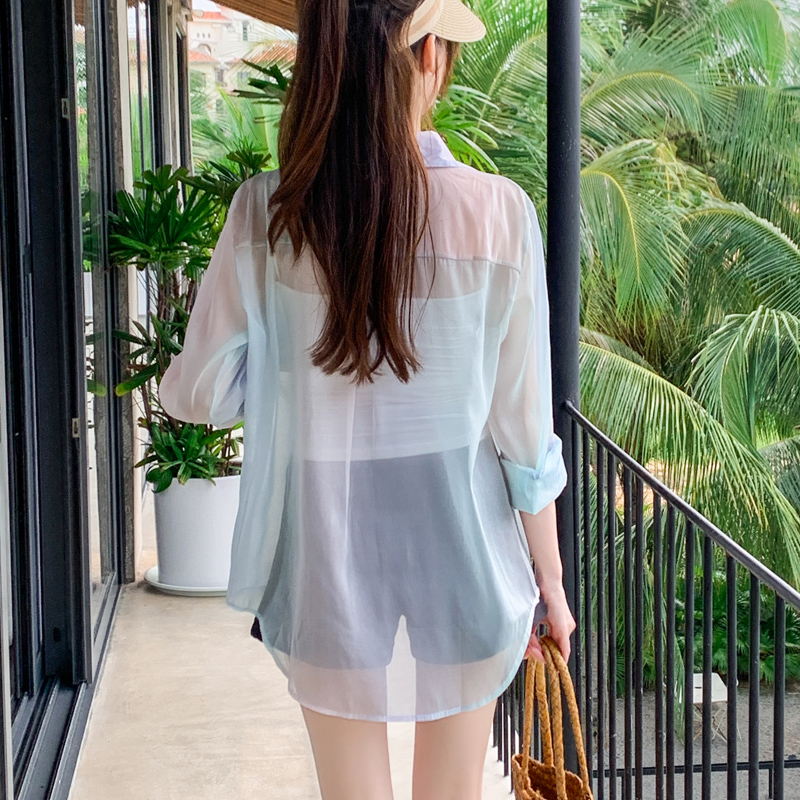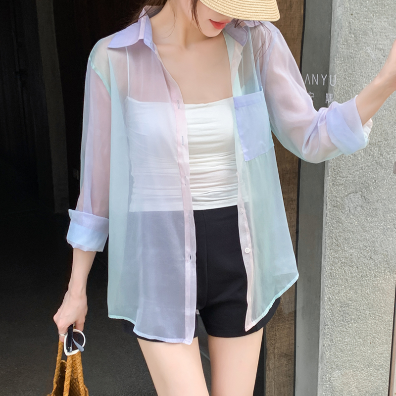 BY13836# 韩版夏季新款女装翻领薄款防晒服基础款雪纺衫开衫衬衫衬衣 服裝批發女裝批發服飾貨源