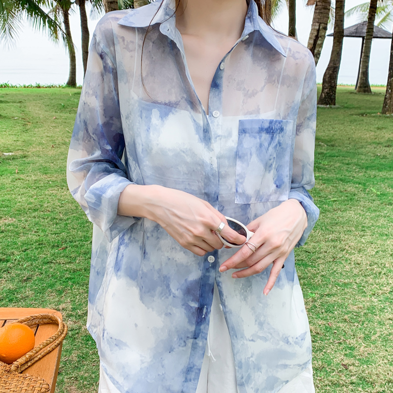 BY13837# 韩版夏季新款女装翻领薄款防晒服基础款雪纺衫开衫衬衫衬衣 服裝批發女裝批發服飾貨源