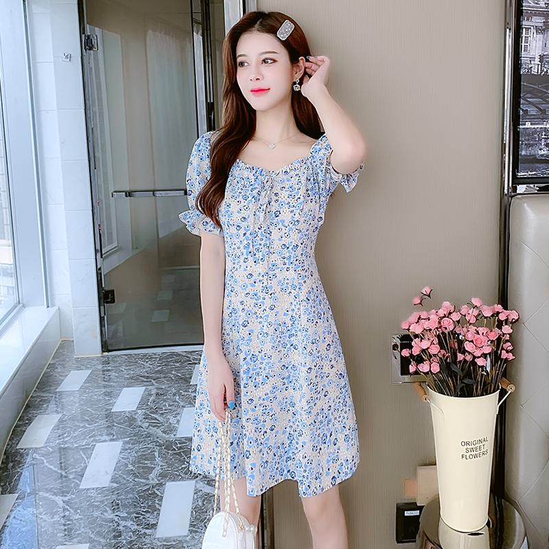 BY13894# 夏季法式赫本风简约时尚连衣裙新款洋气减龄显瘦中长雪纺连衣裙子 服裝批發女裝批發服飾貨源