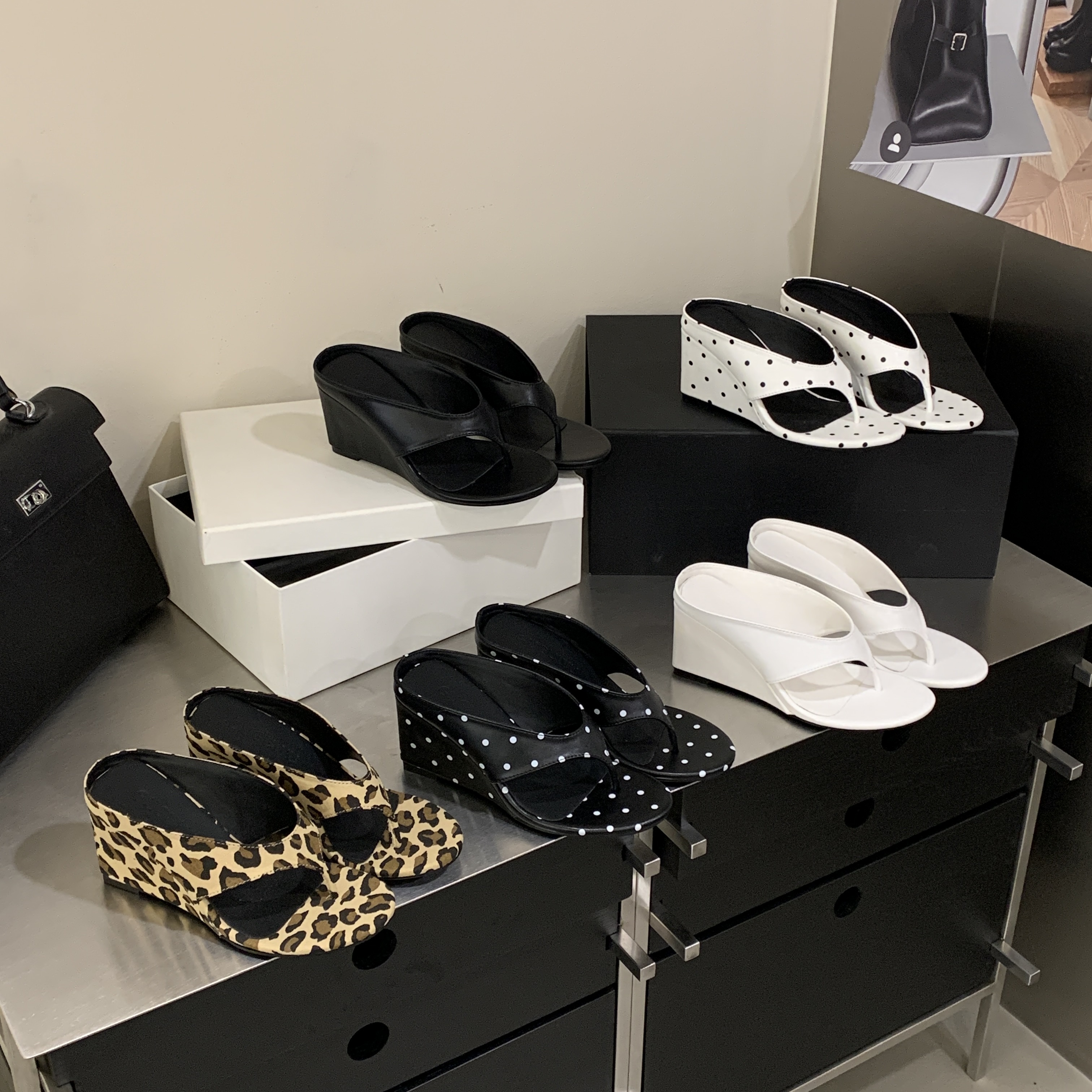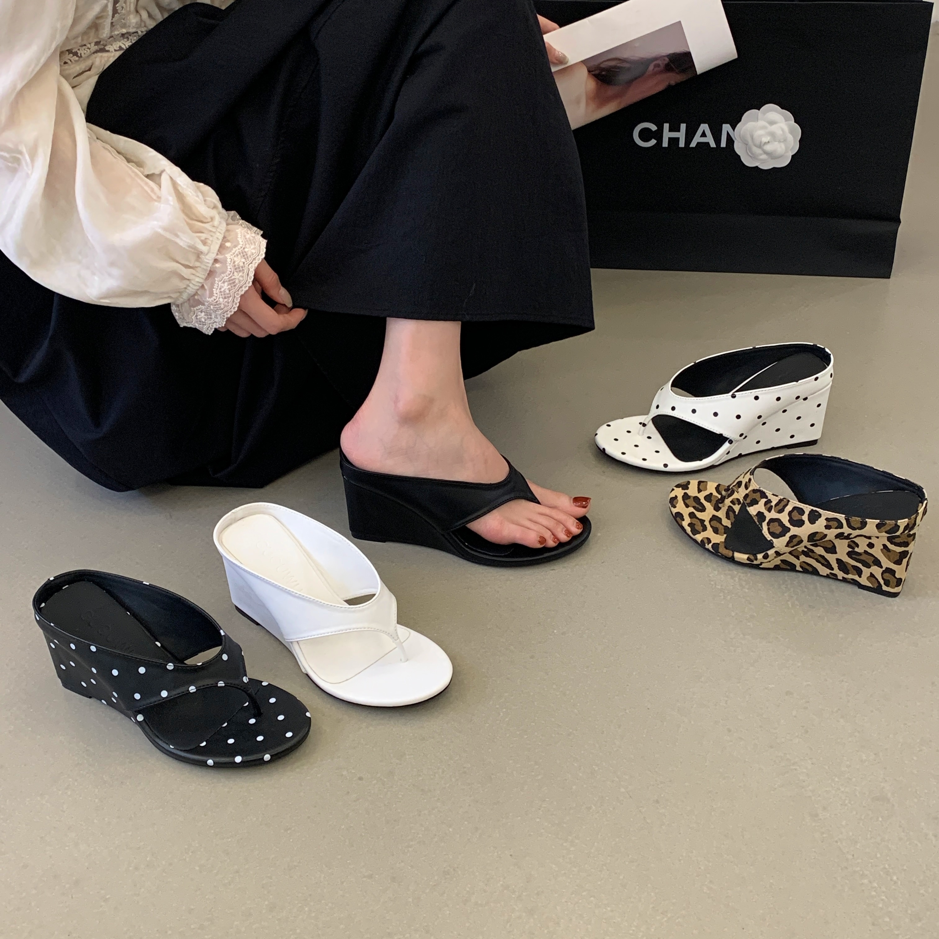 X-33107# 韩版坡跟厚底人字拖女夏外穿百搭增高夹脚波点凉拖鞋新款 鞋子批发女鞋批发凉鞋货源