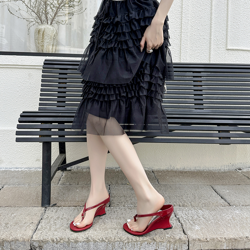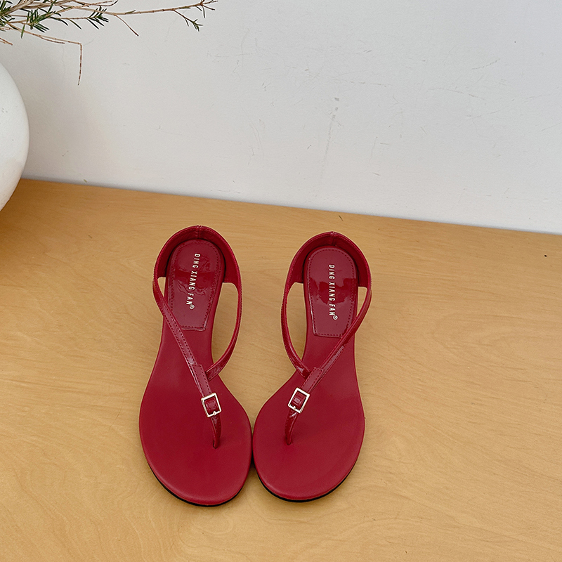 X-33149#夏季法式极简风百搭凉鞋优雅小圆头露趾凉拖舒适坡跟细带女鞋 鞋子批发女鞋批发凉鞋货源