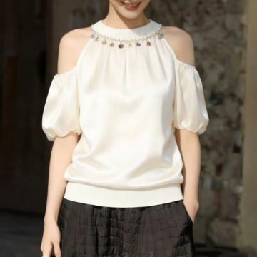 法式设计感气质短袖衬衫女夏季新款露肩衬衣减龄洋气白色上衣 服裝批發女裝批發服飾貨源