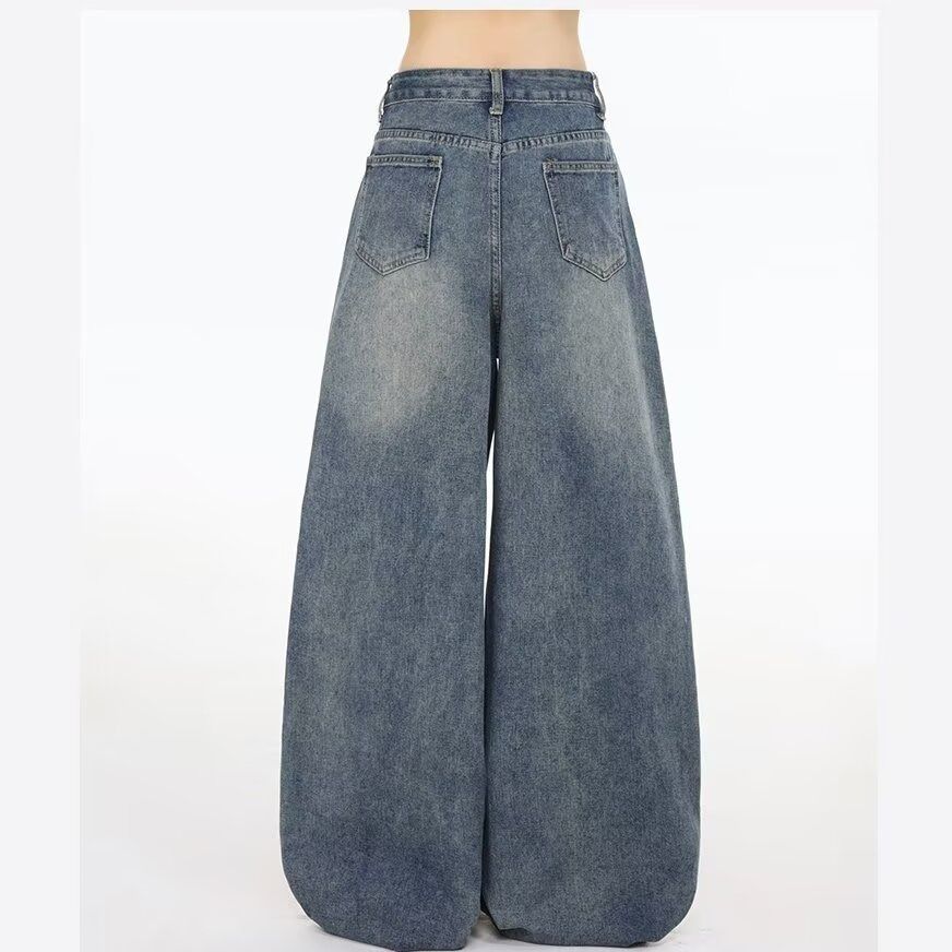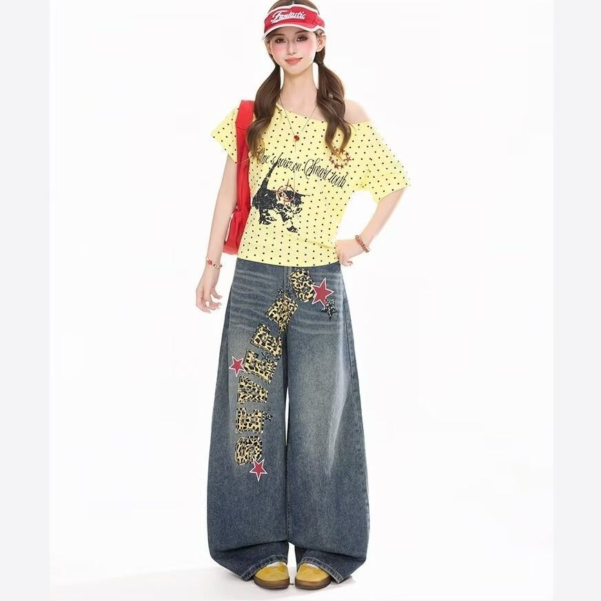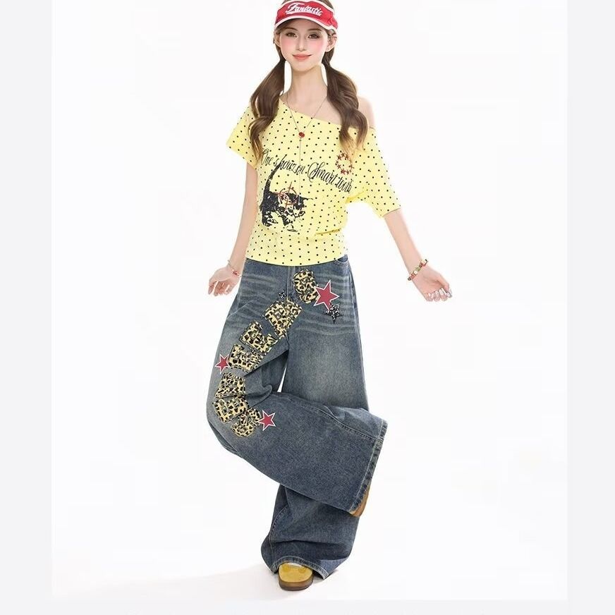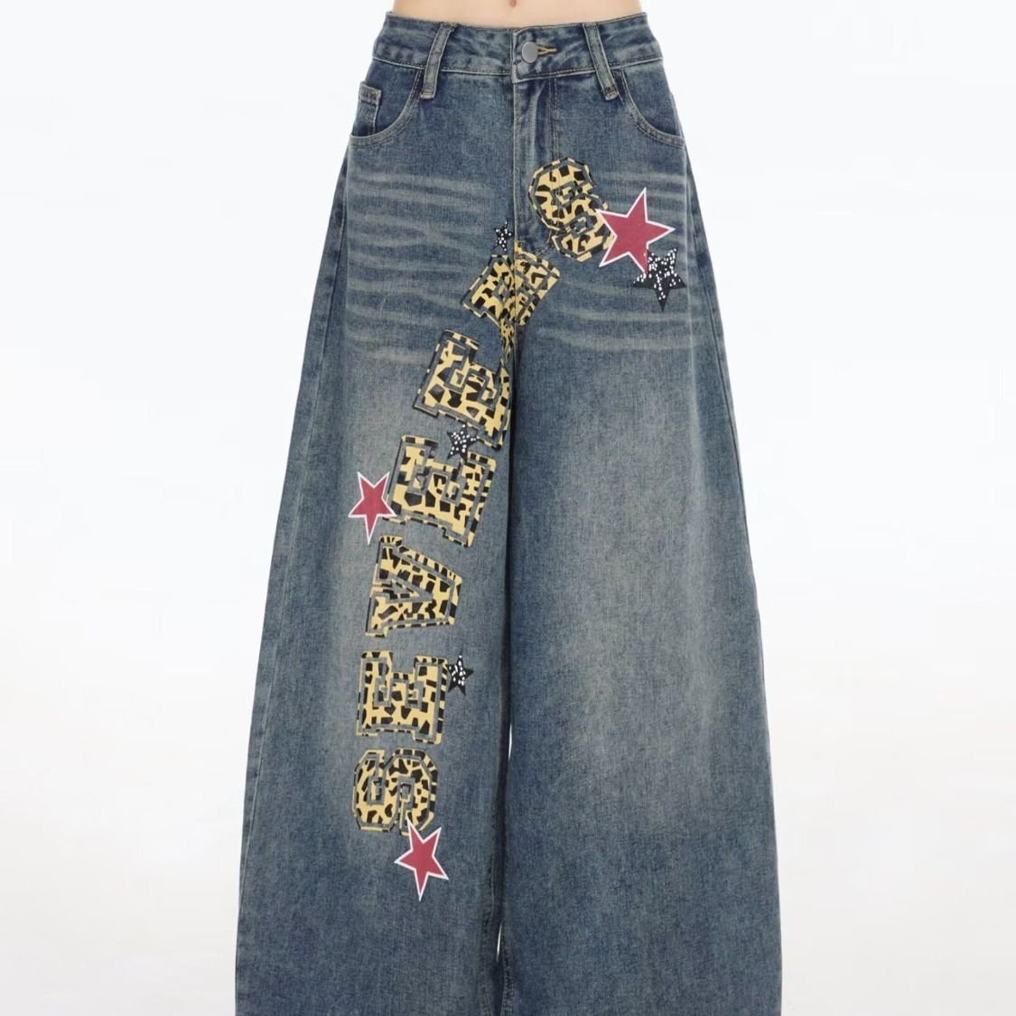 刺绣牛仔裤高街牛仔春秋高腰显瘦窄版直筒阔腿裤休闲裤女 服裝批發女裝批發服飾貨源