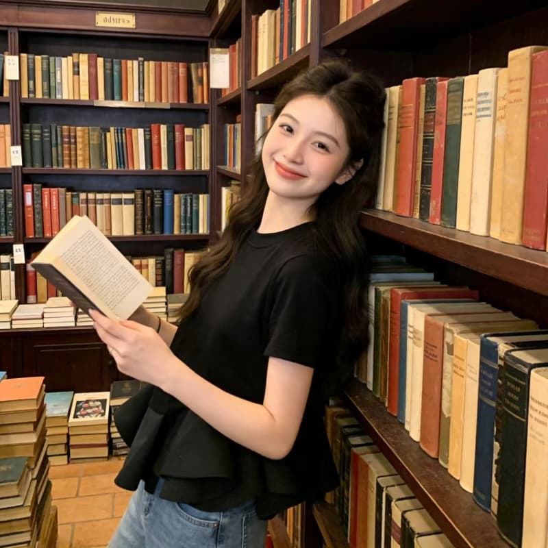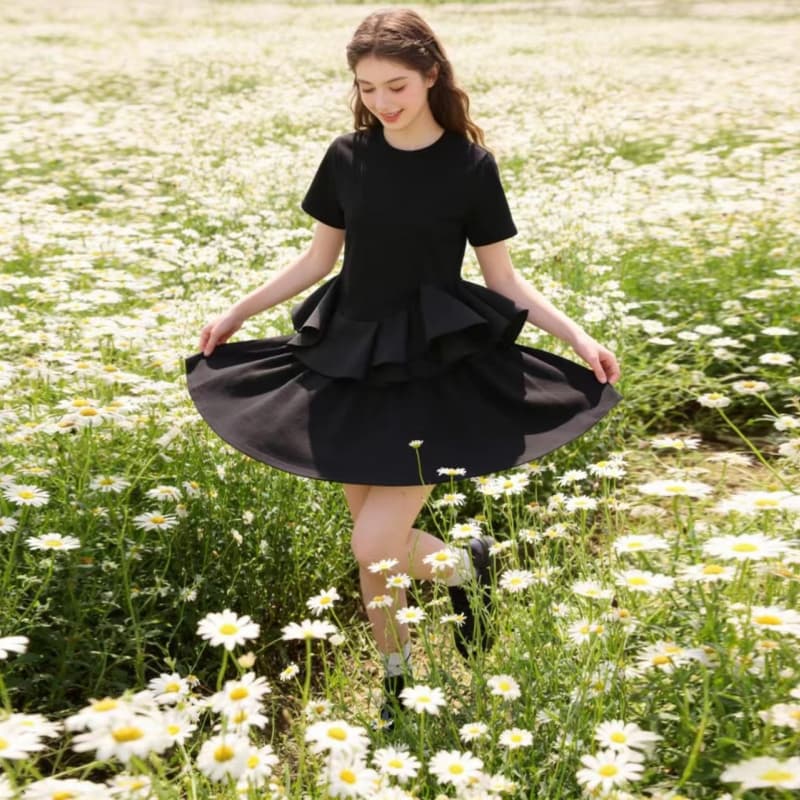BY14000# 韩版夏季新款不规则荷叶边拼接下摆短T女收腰上衣 服裝批發女裝批發服飾貨源