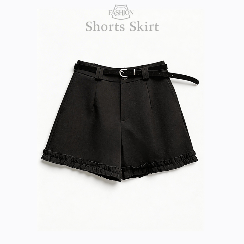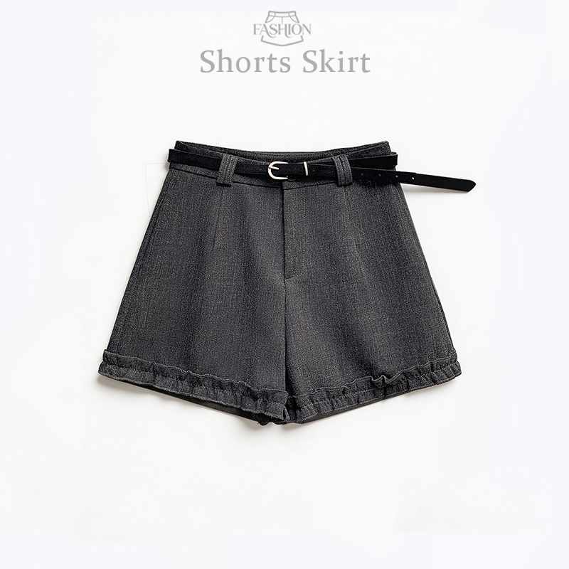 灰色西装木耳边阔腿短裤女春小个子高腰a字百搭休闲裤子 服裝批發女裝批發服飾貨源