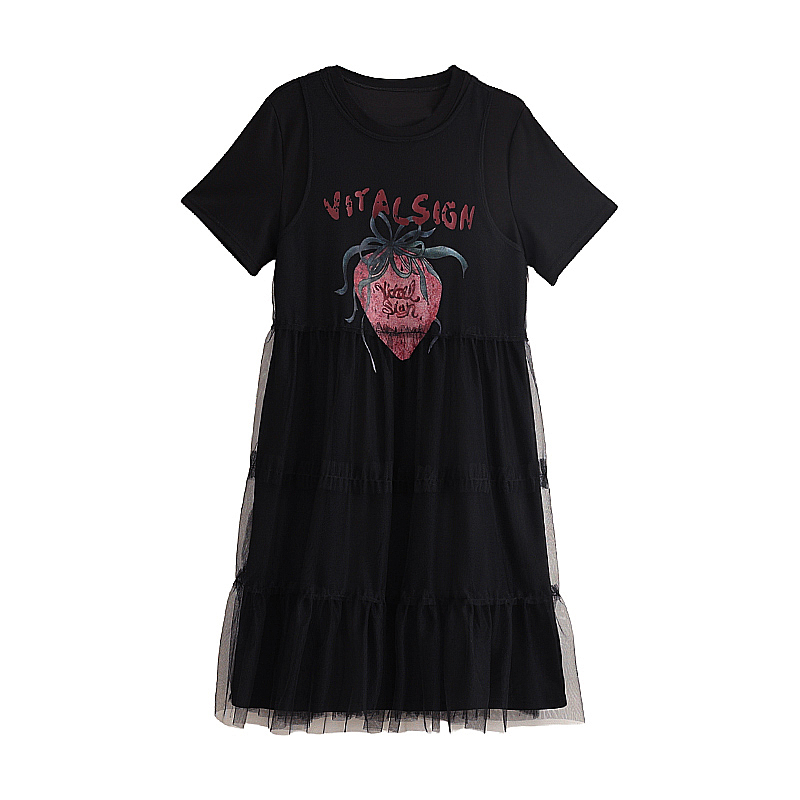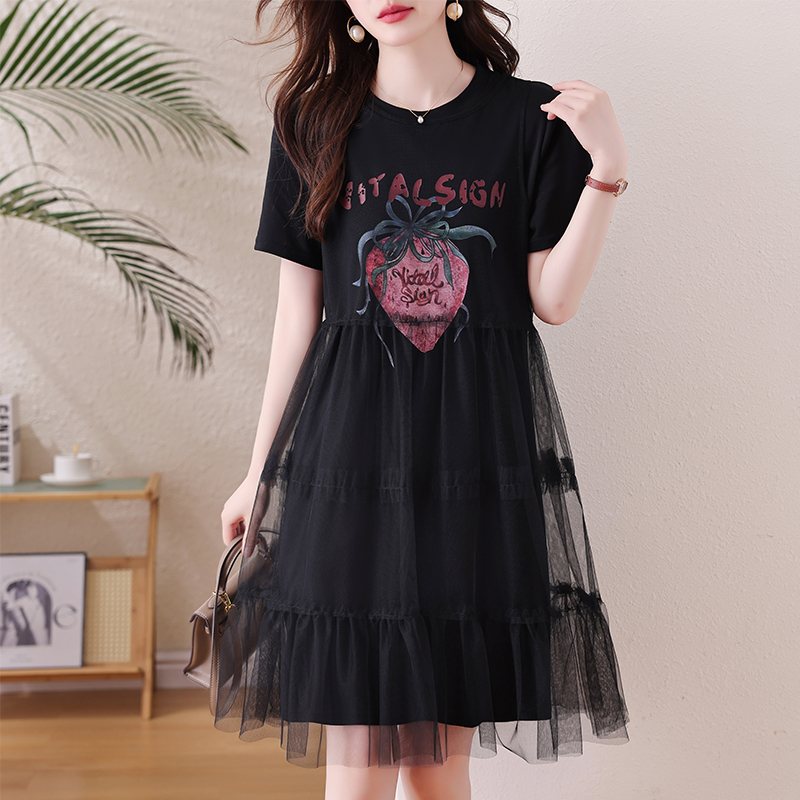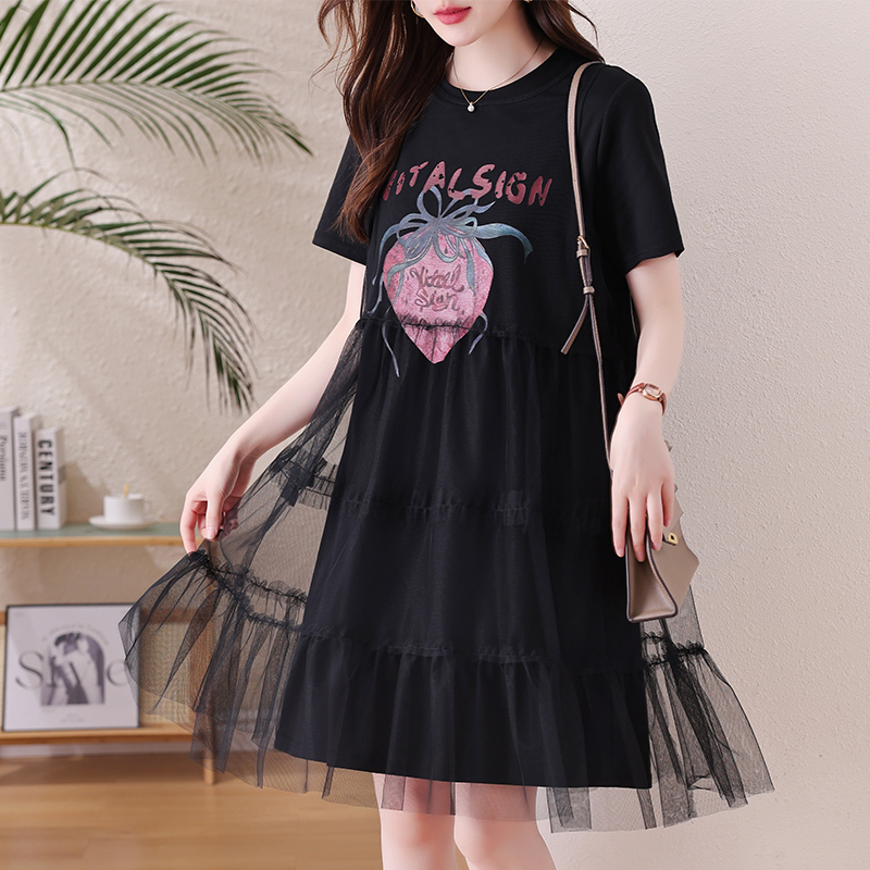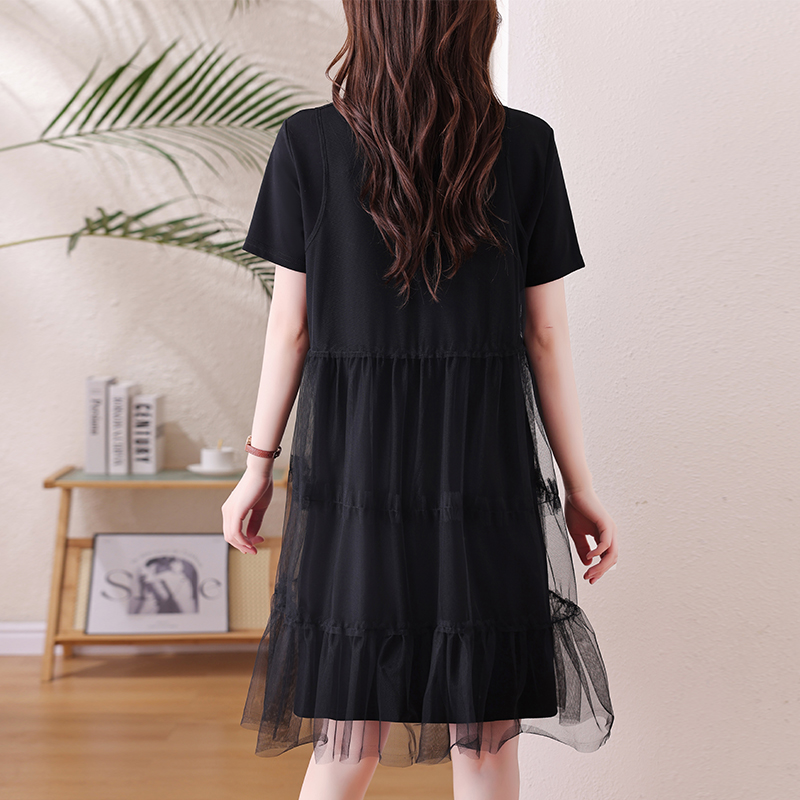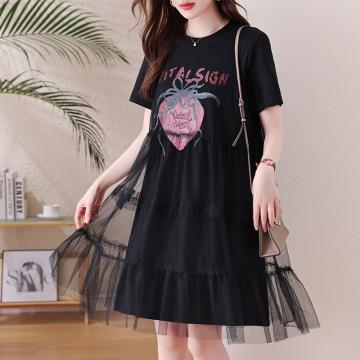 Home > 短袖连衣裙、夜店装 > BY14061# 夏新款胖mm大码女装网纱洋气T恤裙韩版休闲连衣裙 服裝批發女裝批發服飾貨源