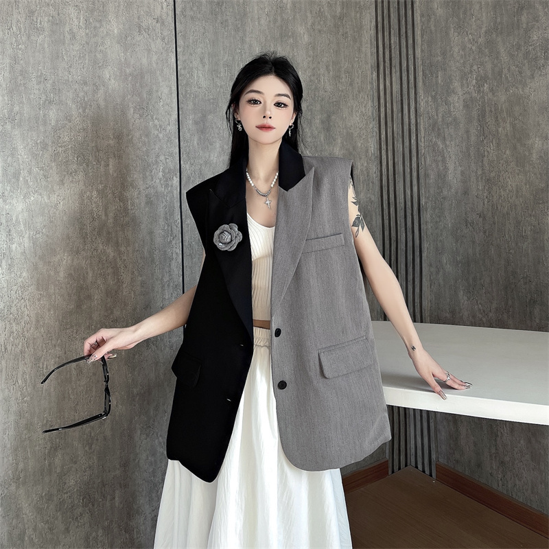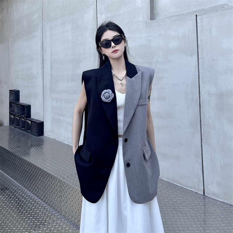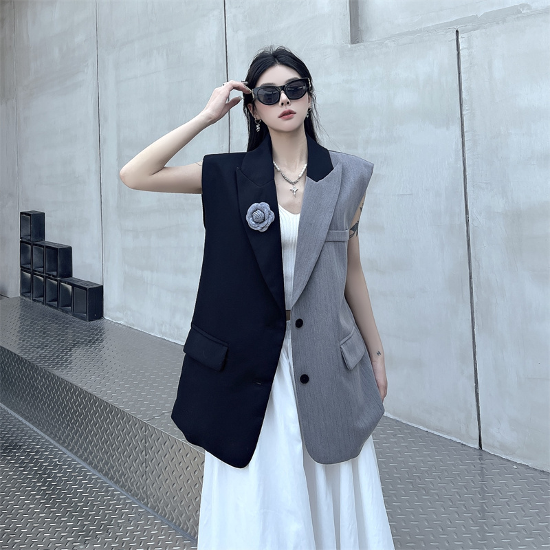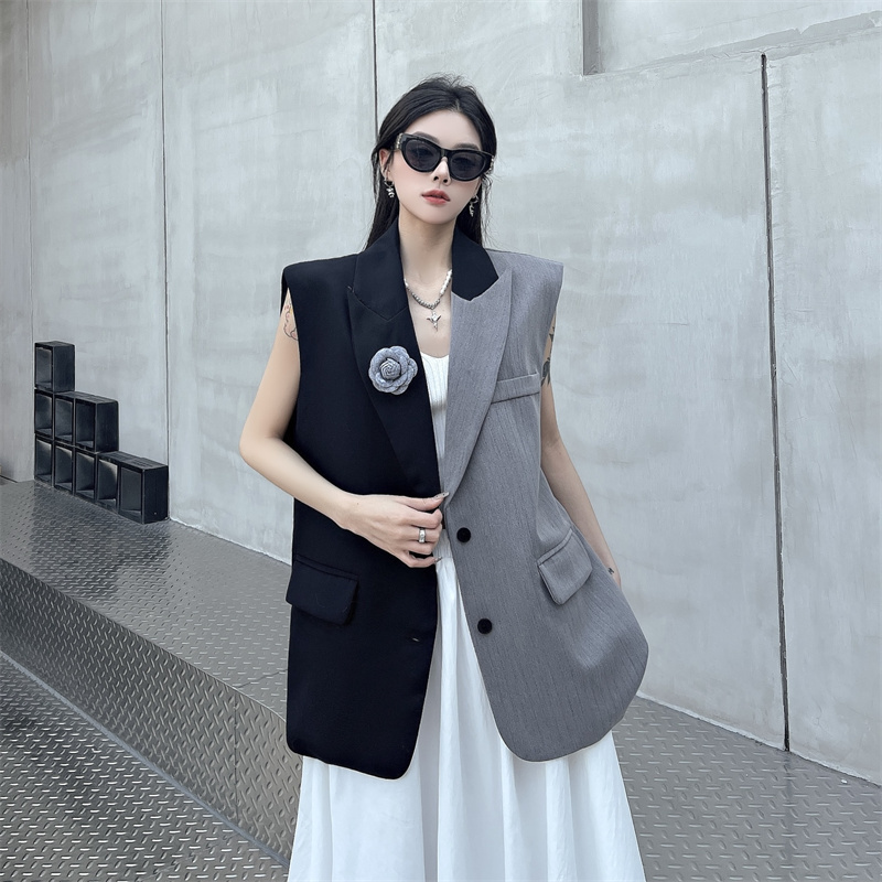 BY14114# 小众设计感不规则拼接西装马甲外套女 服裝批發女裝批發服飾貨源