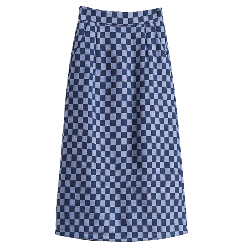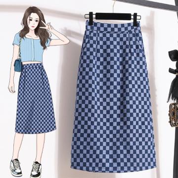 BY14294# 夏新款大码洋气格子牛仔半身裙胖MM高腰中长款休闲半身裙 服裝批發女裝批發服飾貨源