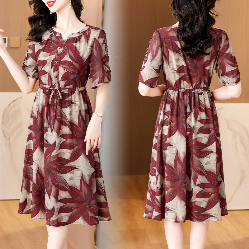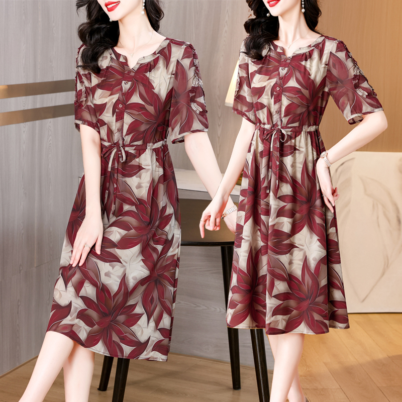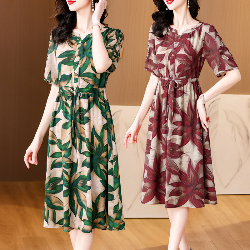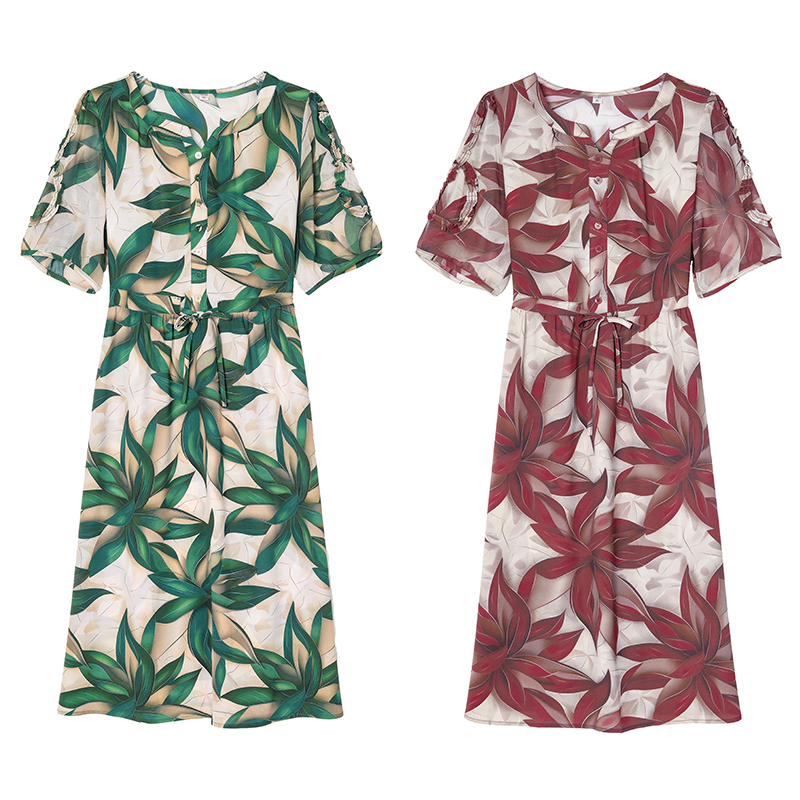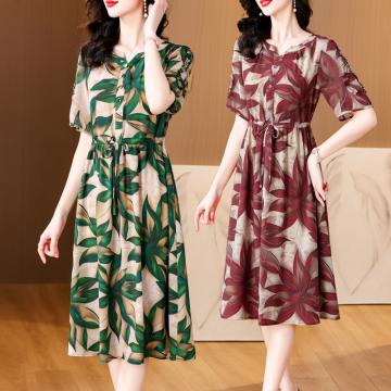 BY14316# 夏新款大码女装短袖印花连衣裙遮腹显瘦时尚洋气裙子 服裝批發女裝批發服飾貨源