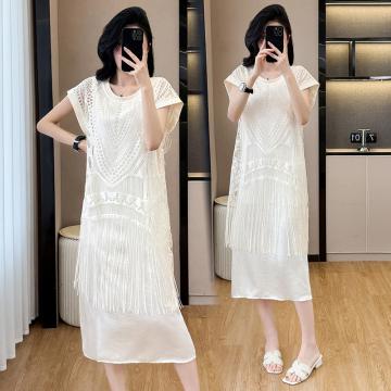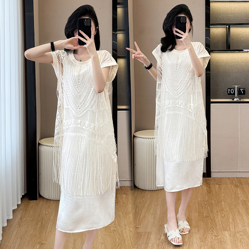 BY14341# 大码女装夏季新款名媛风时尚流苏遮肚显瘦中长款宽松连衣裙 服裝批發女裝批發服飾貨源