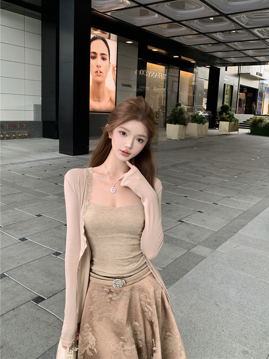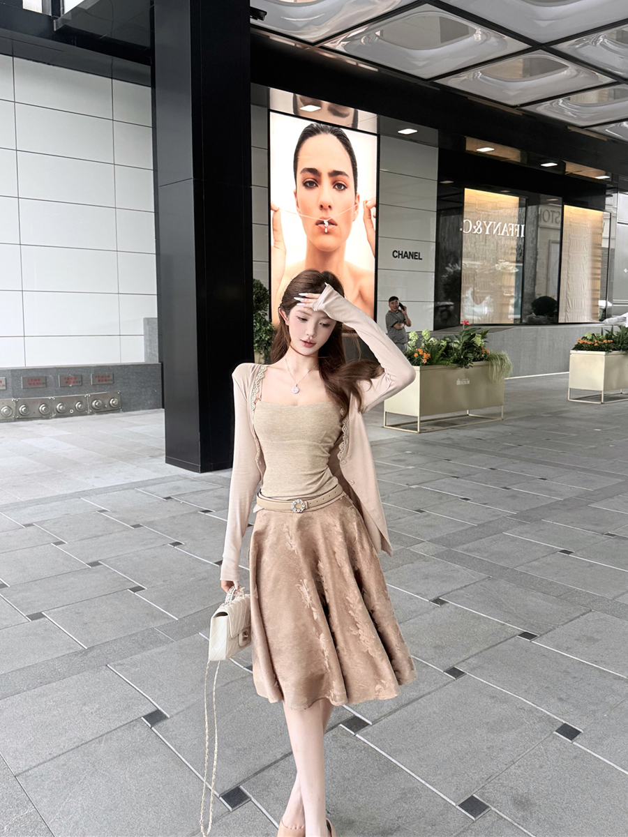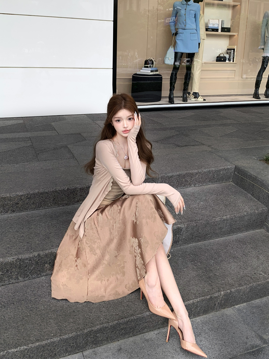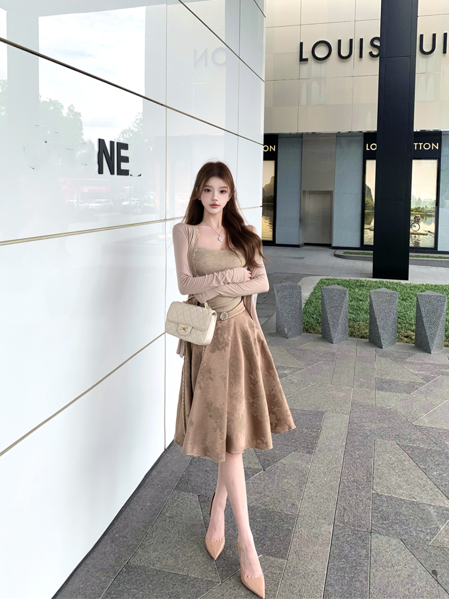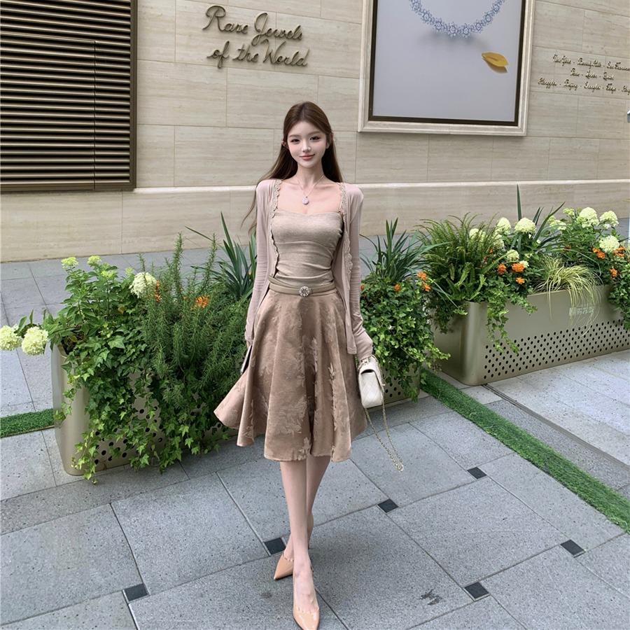 吊带上衣+开衫+半身裙