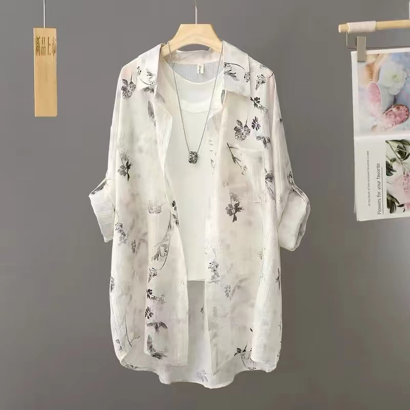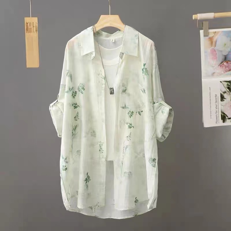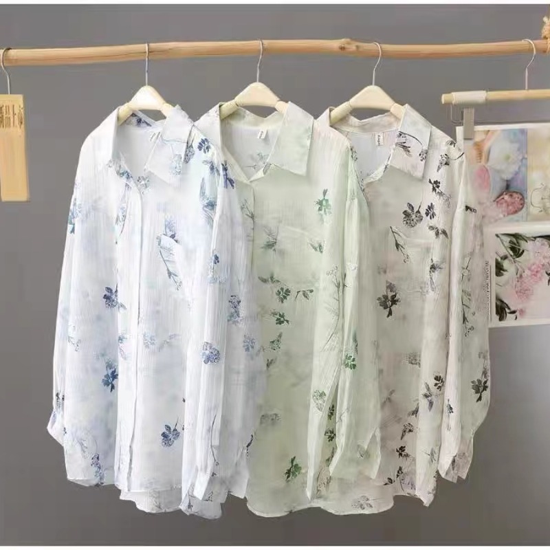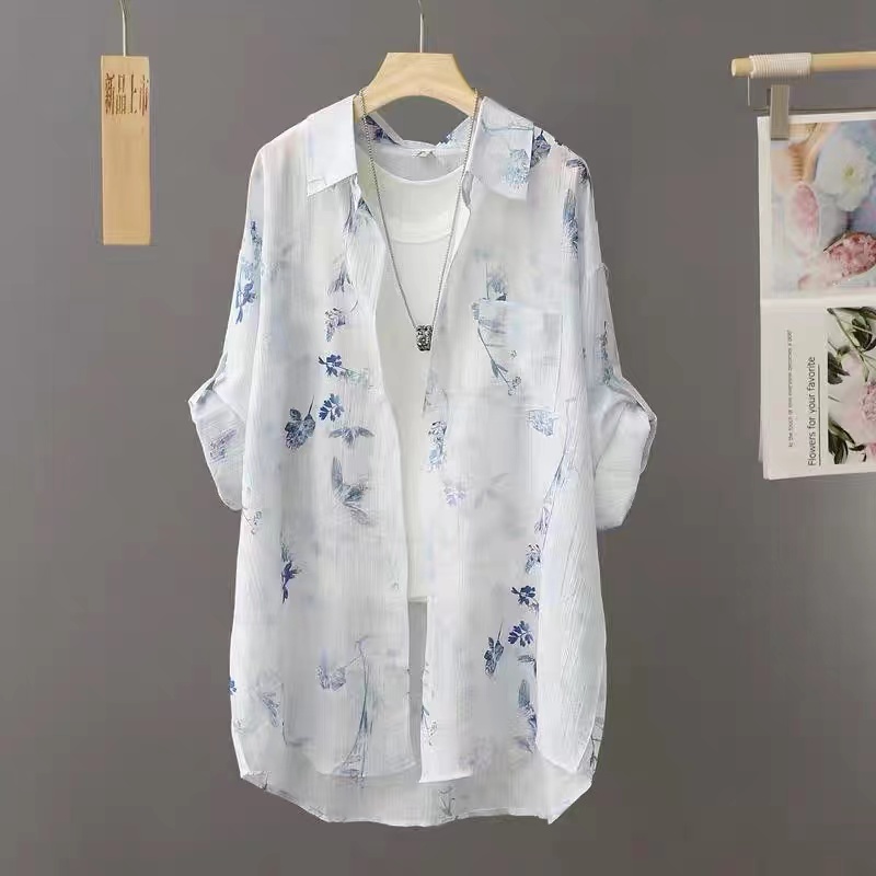 BY14455# 新中式水墨扎染防晒衬衫男女夏季宽松超仙防晒薄款外套服裝批發女裝批發服飾貨源