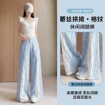 FA56866# 蕾丝拼接阔腿裤女夏季薄款小个子高腰显瘦宽松直筒垂感拖地长裤