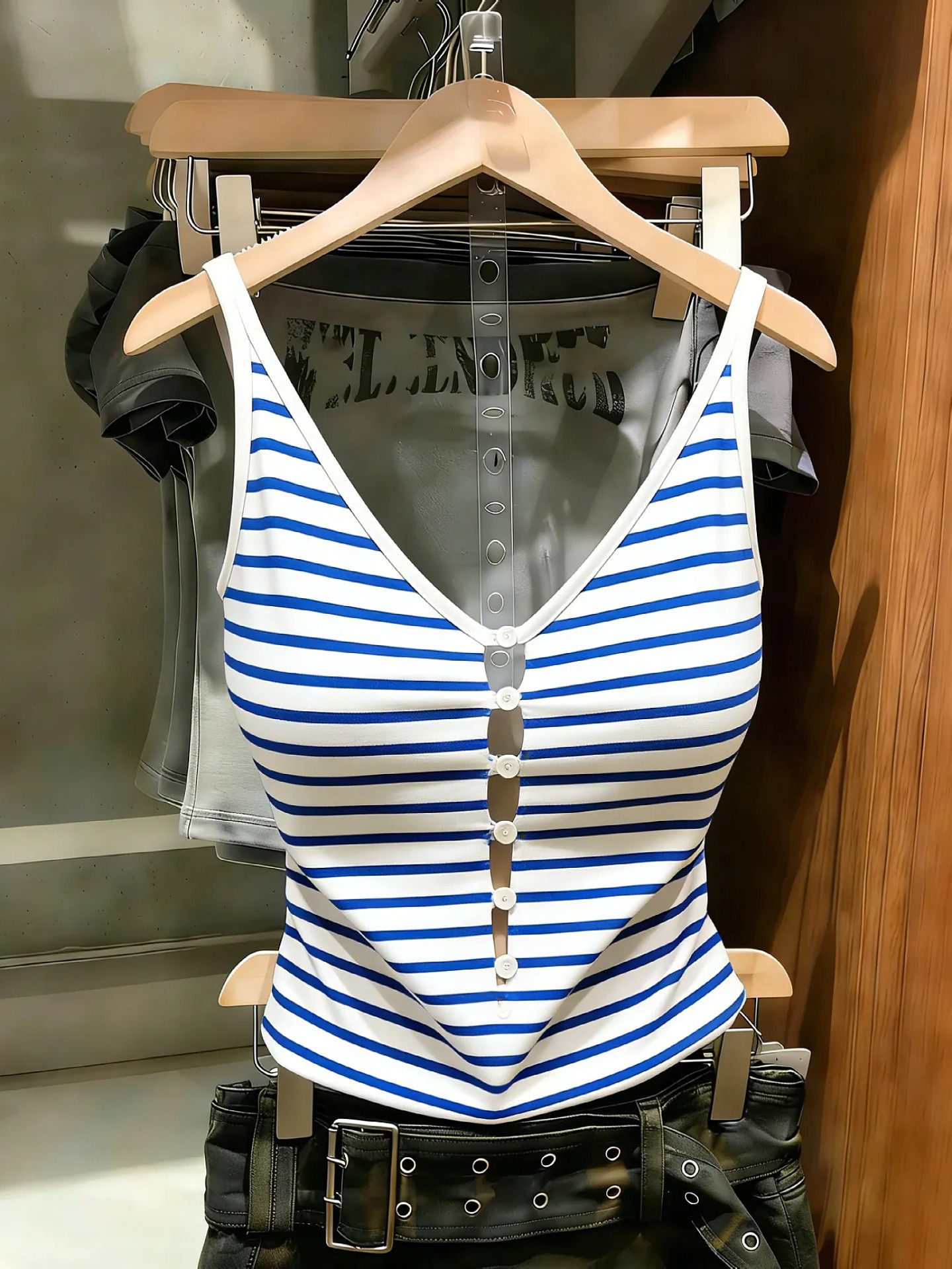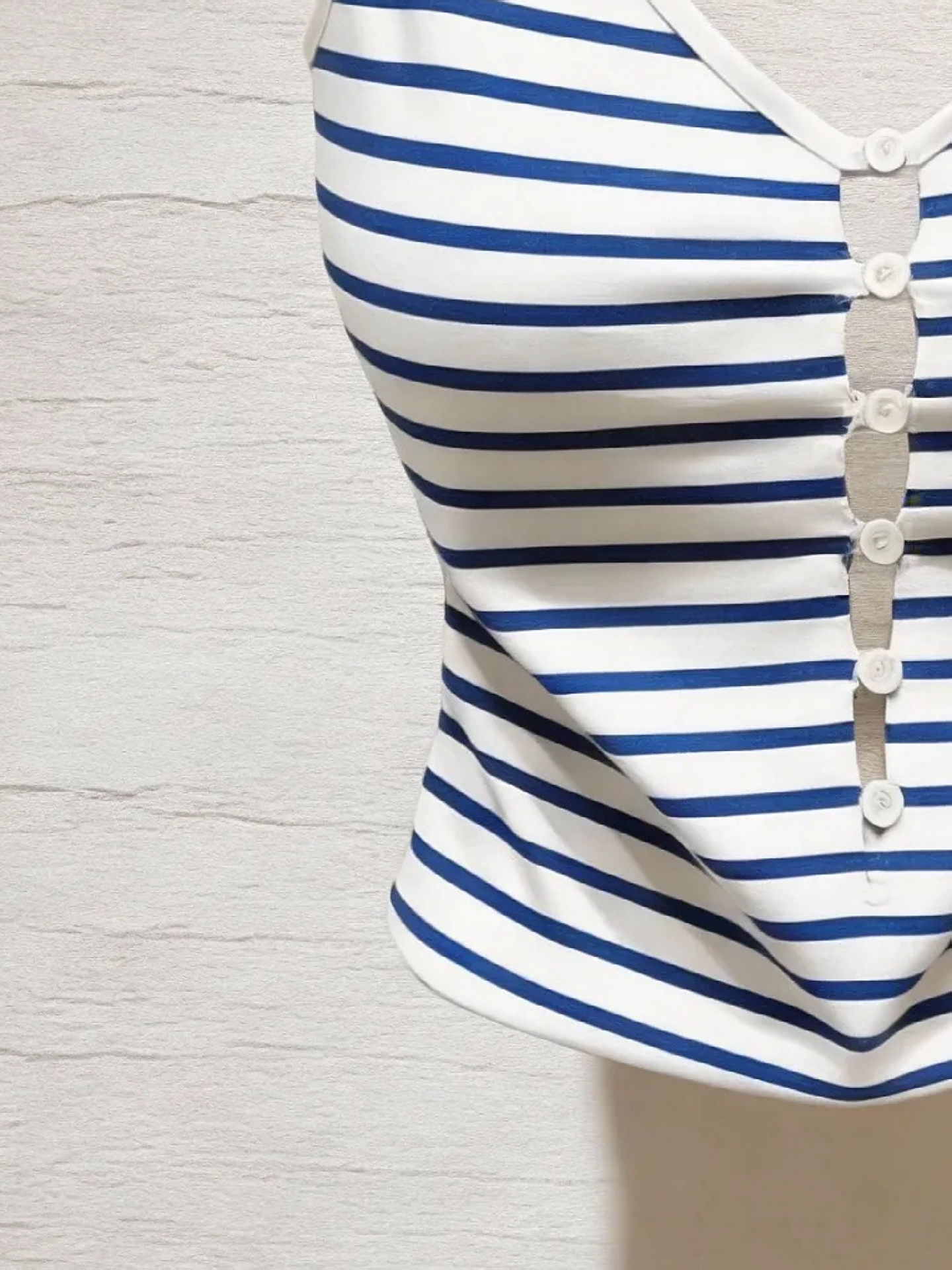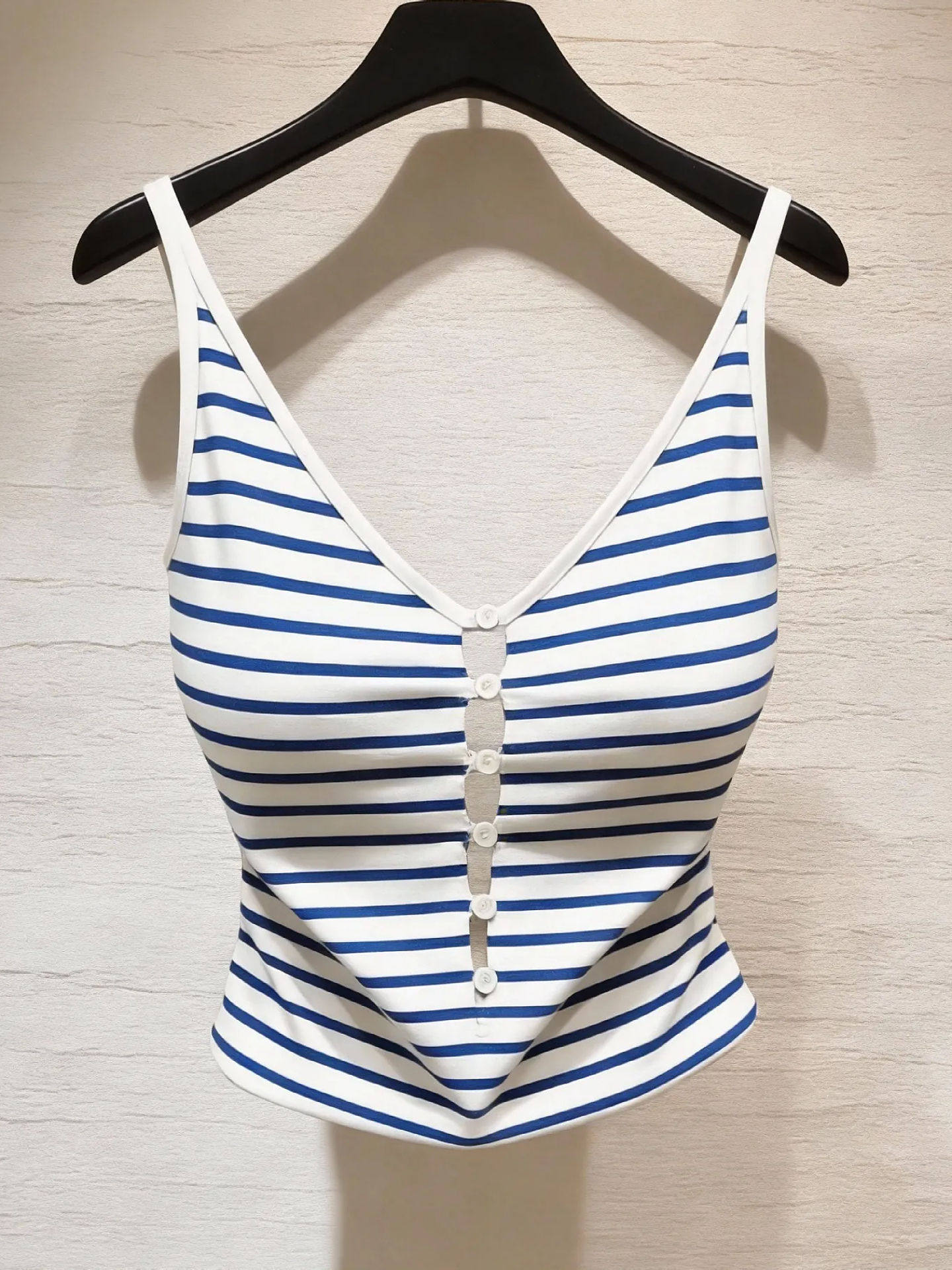 FA56867# 十三行优质爆款女装新款独特洋气条纹吊带背心打底内搭设计感上衣