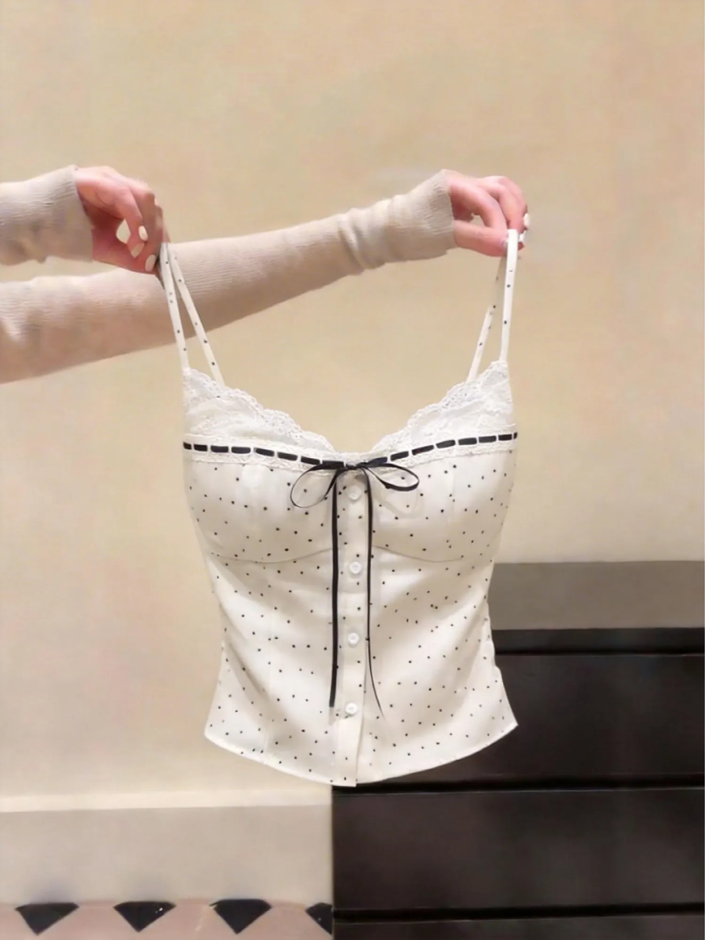 FA56871# 韩系甜辣风波点吊带背心夏款修身显瘦打底小衫