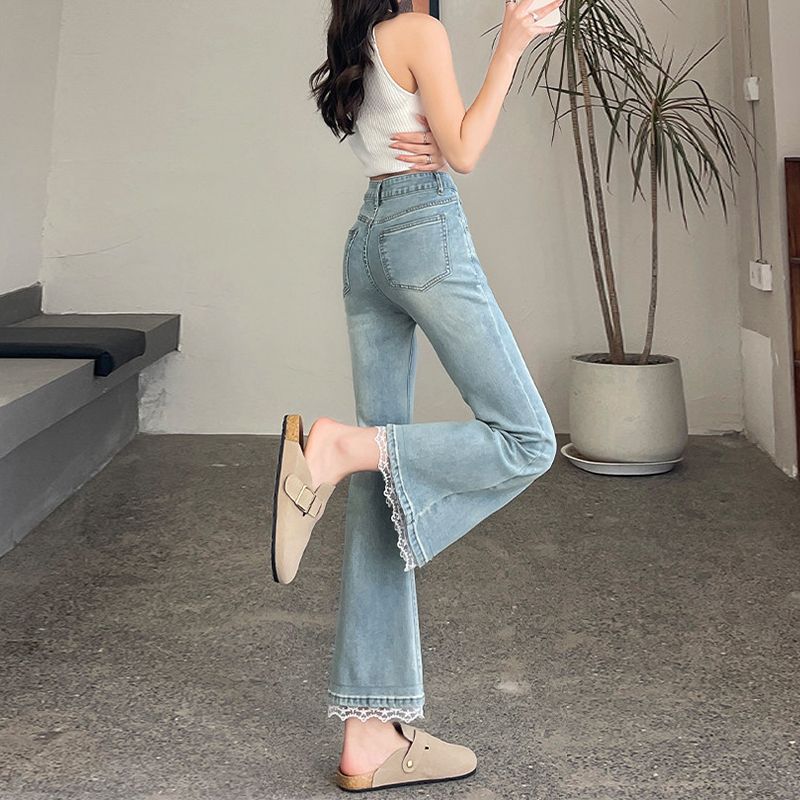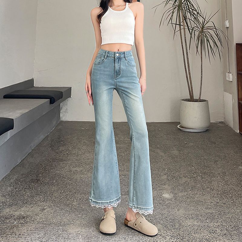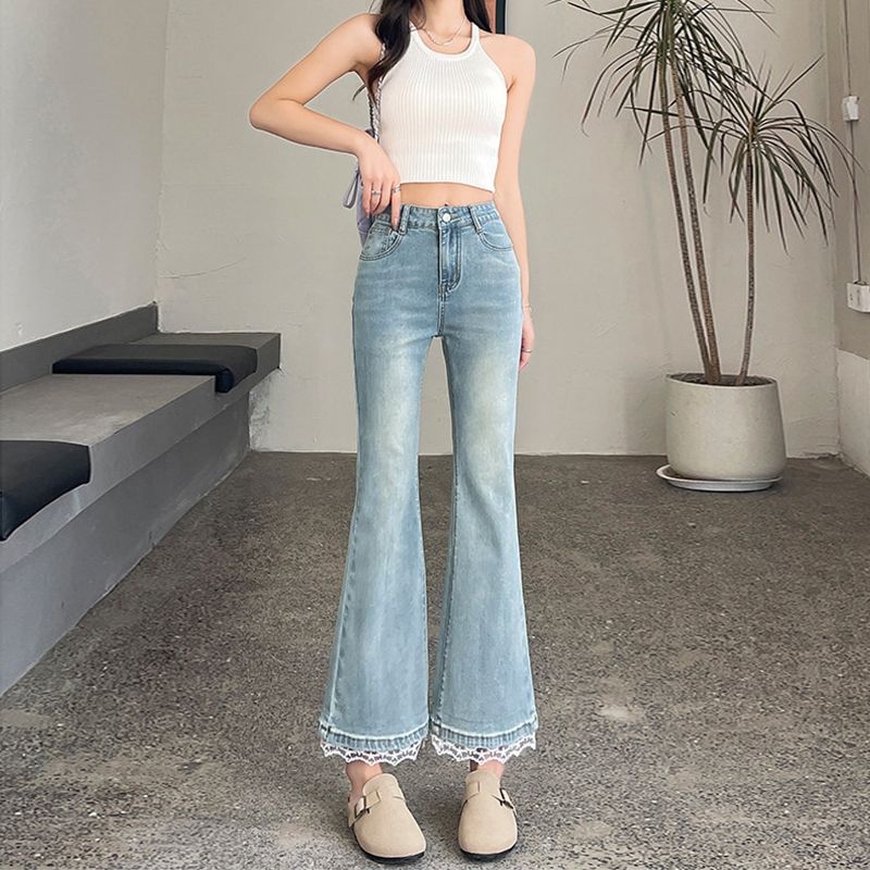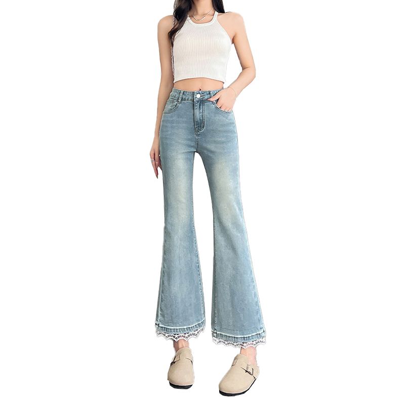 BY14652# 春季新款小个子微喇牛仔裤女大码高腰修身显瘦九分喇叭裤子 服裝批發女裝批發服飾貨源