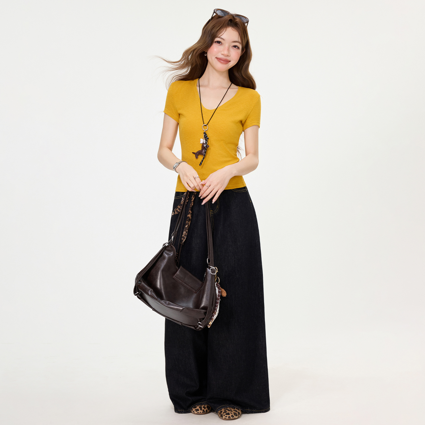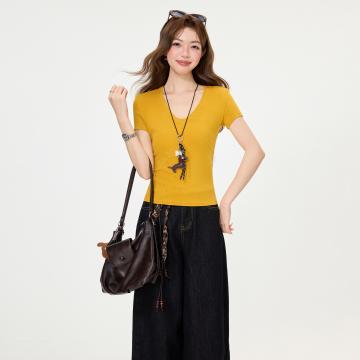 BY15588# 性感辣妹低圆领正肩内搭短袖t恤女夏修身露锁骨上衣 服裝批發女裝批發服飾貨源