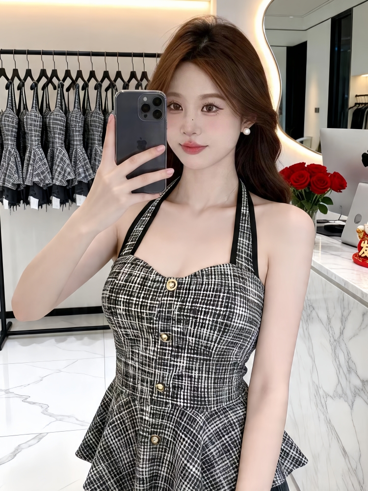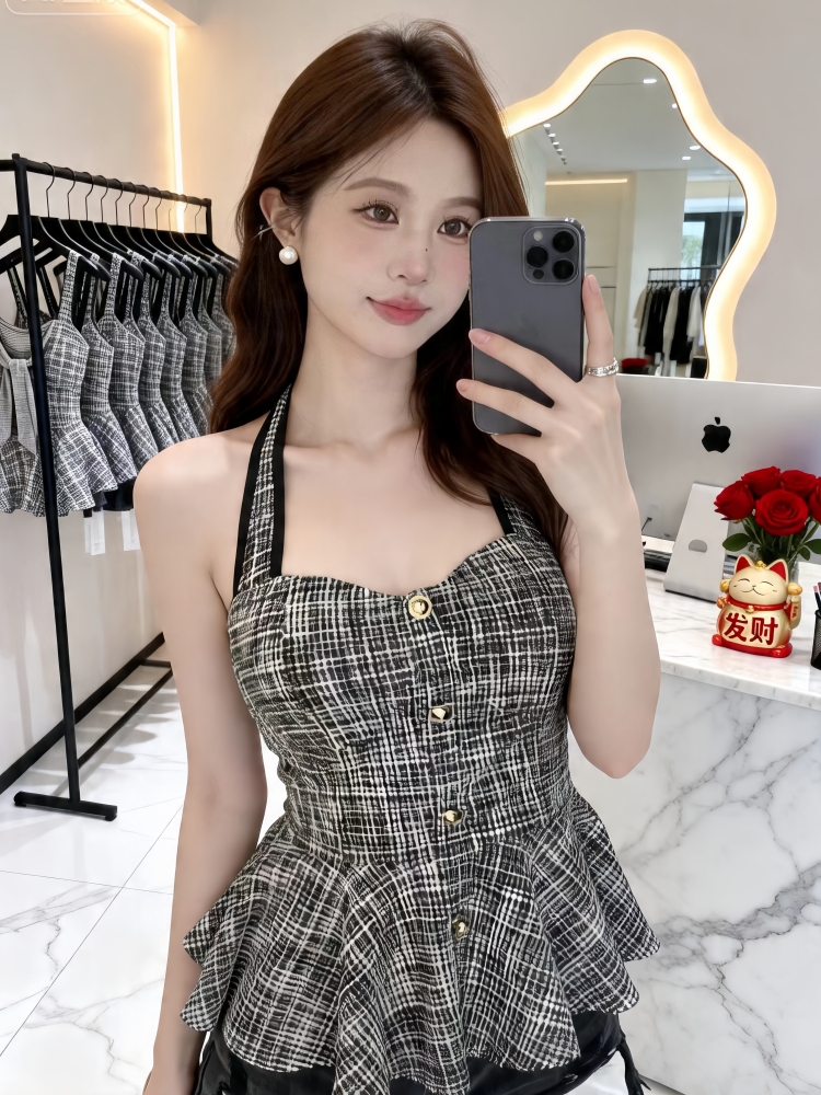 BY18336# 小香风性感外穿复古挂脖吊带背心女夏季甜酷辣妹收腰显瘦无袖上衣 服裝批發女裝批發服飾貨源