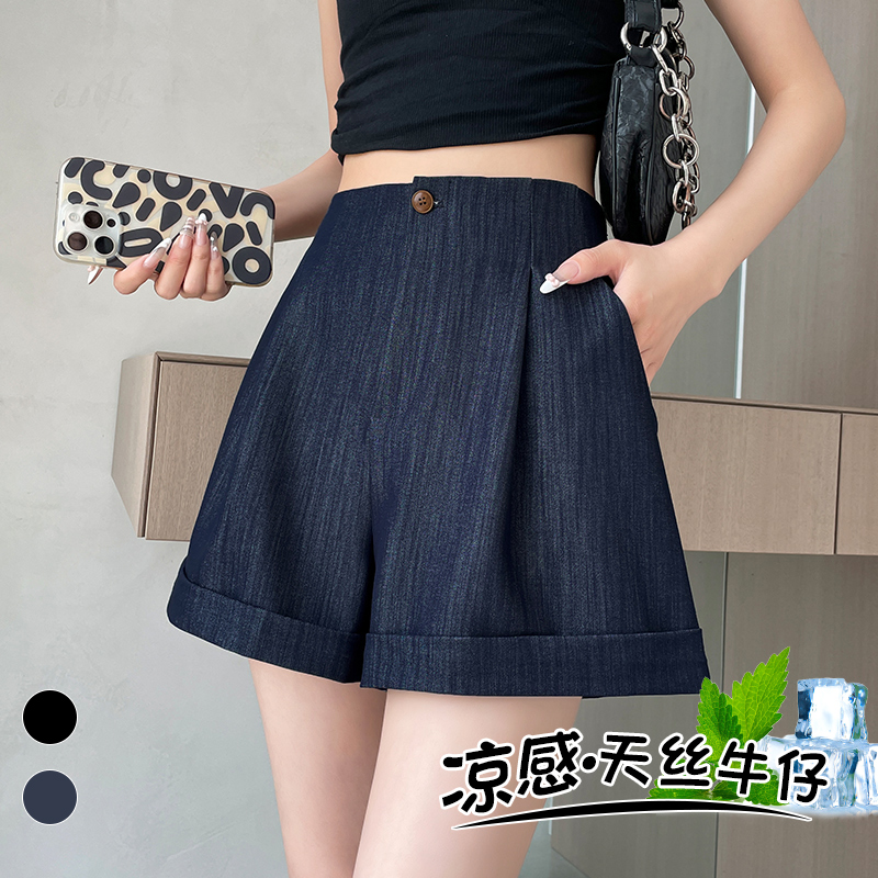 BY18510# 夏季新款天丝软牛仔五分裤高腰阔腿A字短裤休闲裤女 服裝批發女裝批發服飾貨源