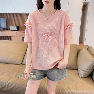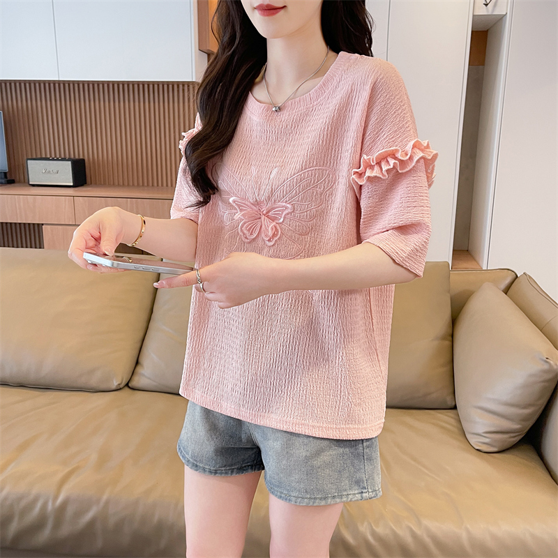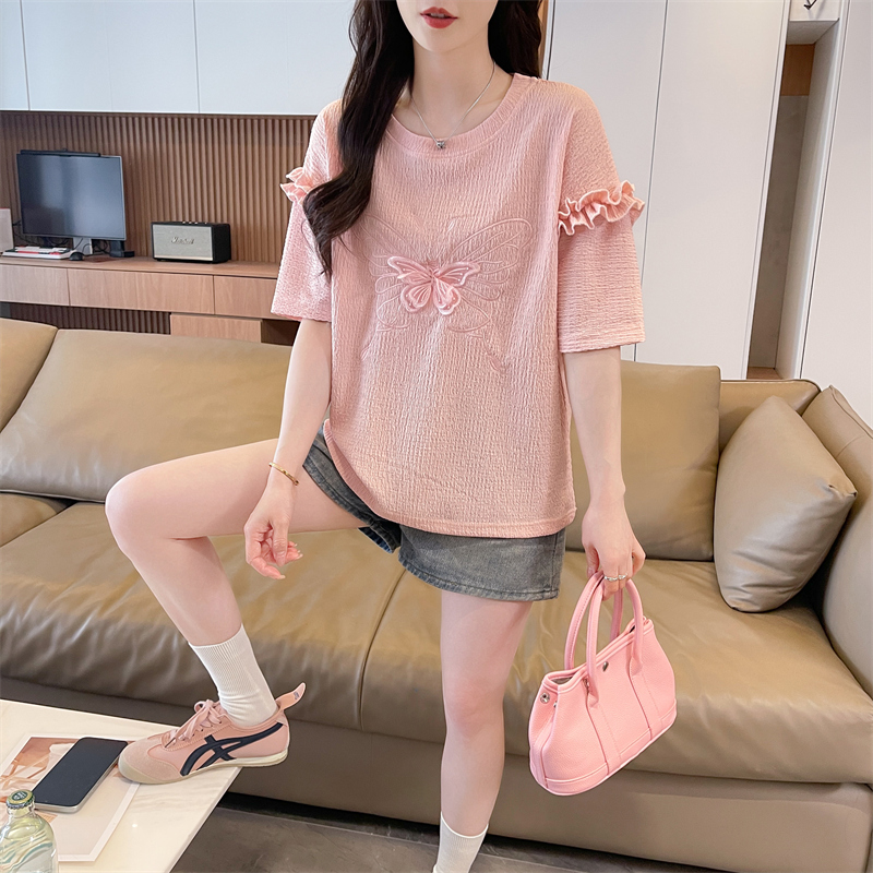 BY18521# 短袖t恤女夏季新款圆领时尚百搭韩版花边袖子上衣ins 服裝批發女裝批發服飾貨源