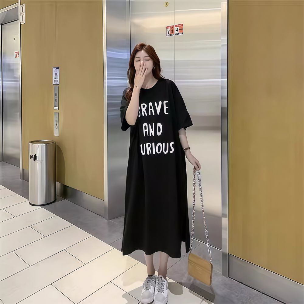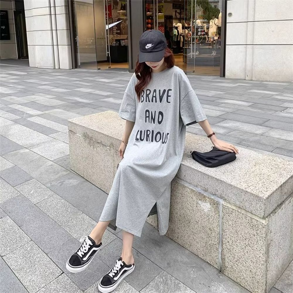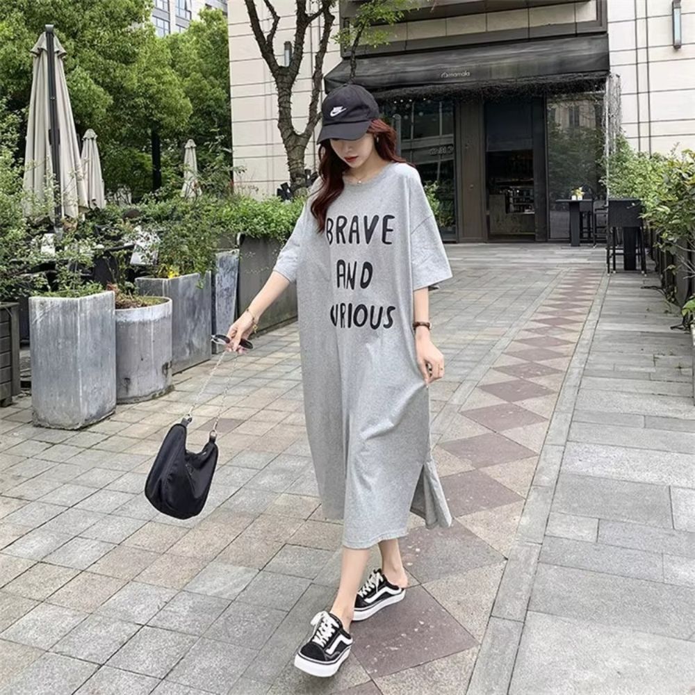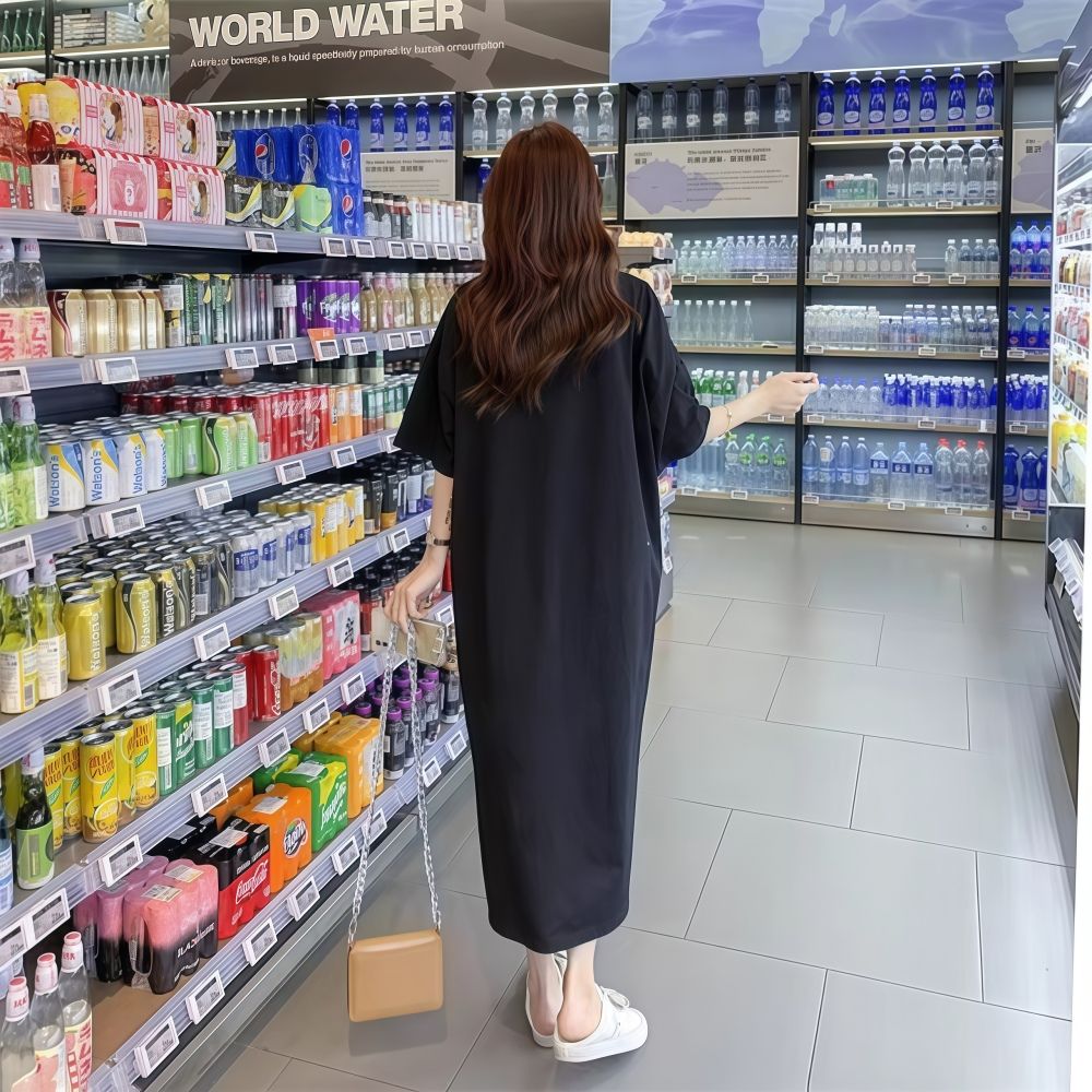 BY18524# 首发韩版大版t恤裙女纯棉长款过膝宽松大码懒人连衣裙长裙 服裝批發女裝批發服飾貨源