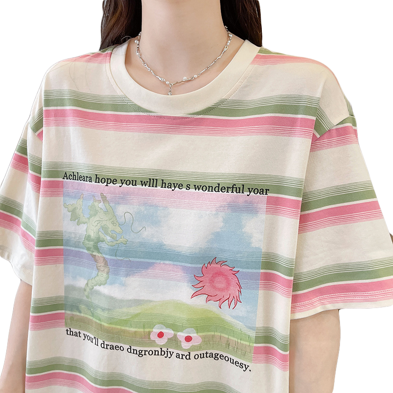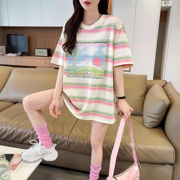 BY18525# 珠地条纹短袖T恤夏季新款宽松高级感撞色百搭上衣i女ns潮 服裝批發女裝批發服飾貨源