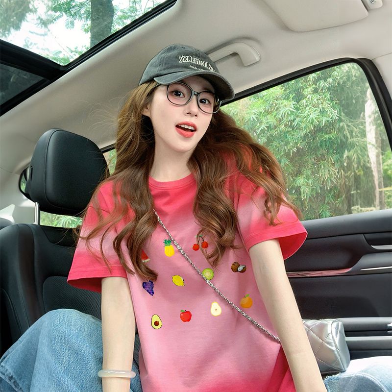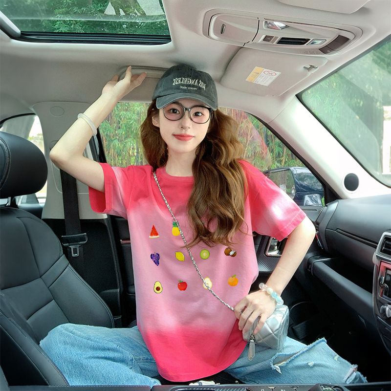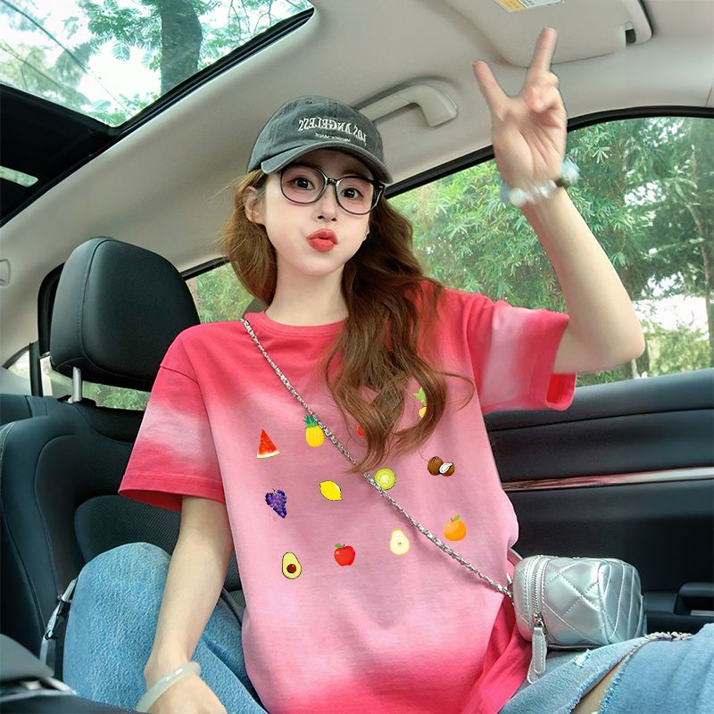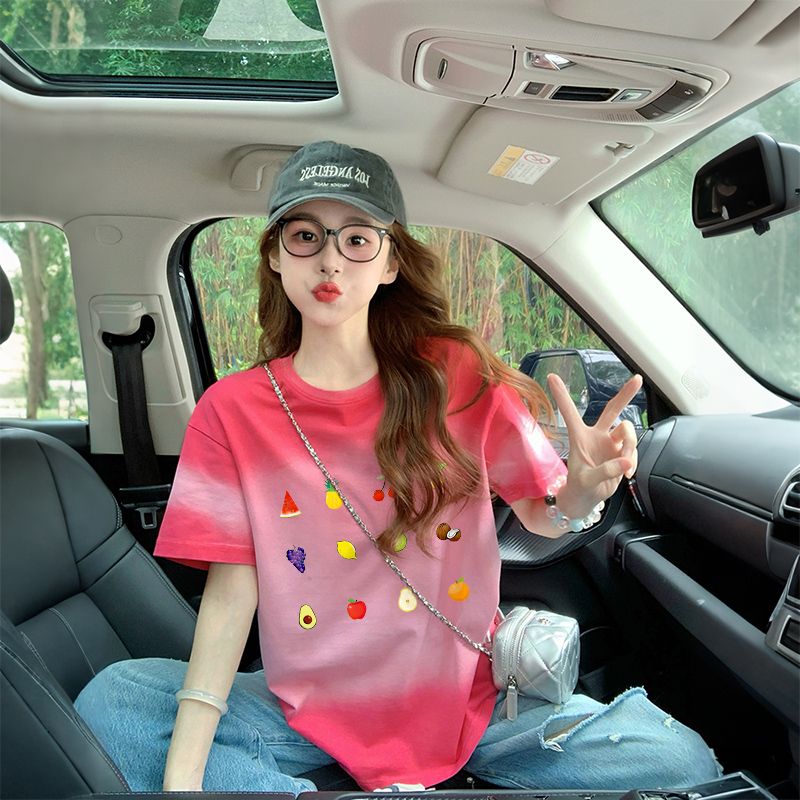 BY18527# 纯棉后包领爆款渐变扎染短袖t恤女夏季宽松设计感上衣ins 服裝批發女裝批發服飾貨源