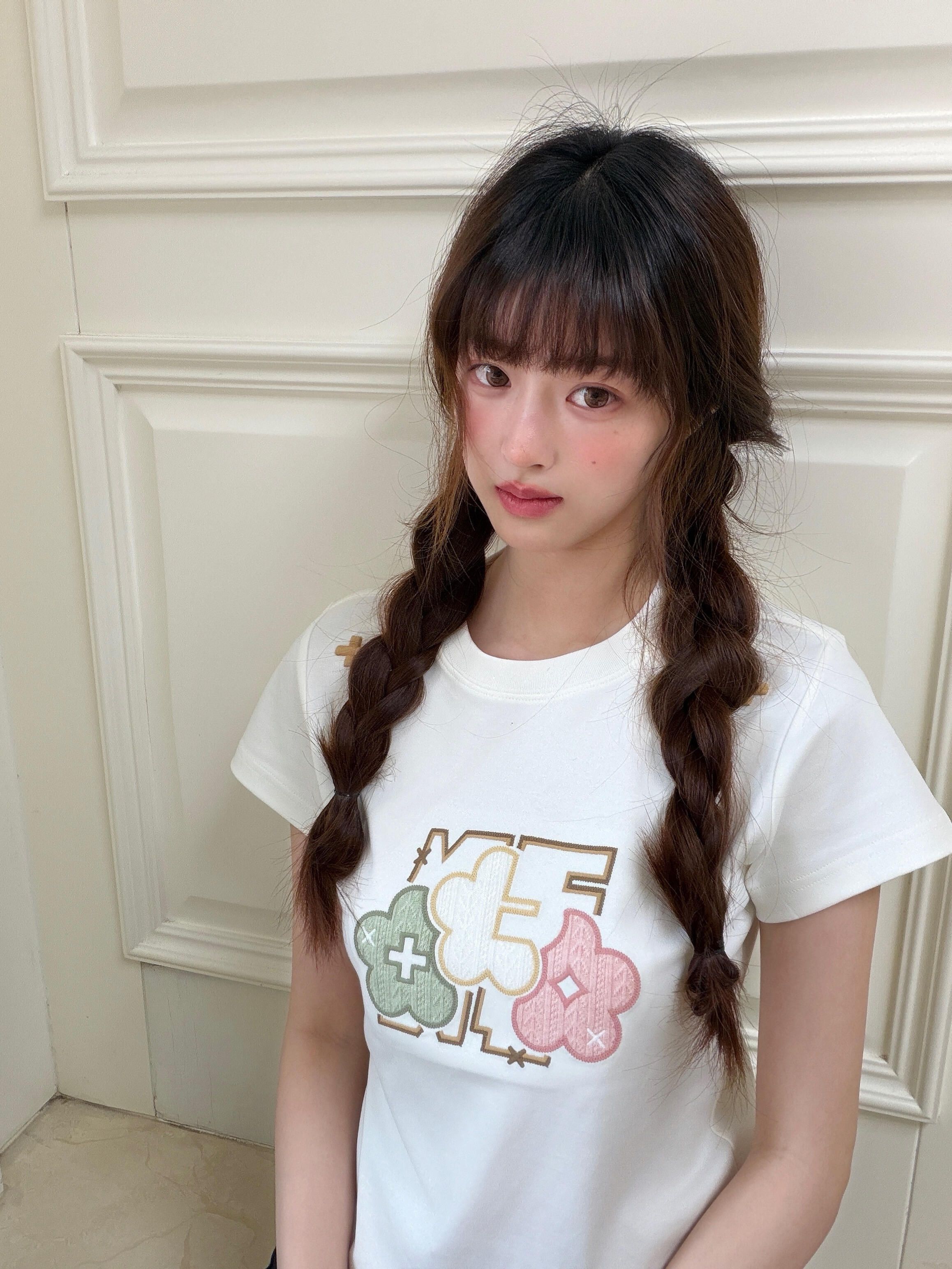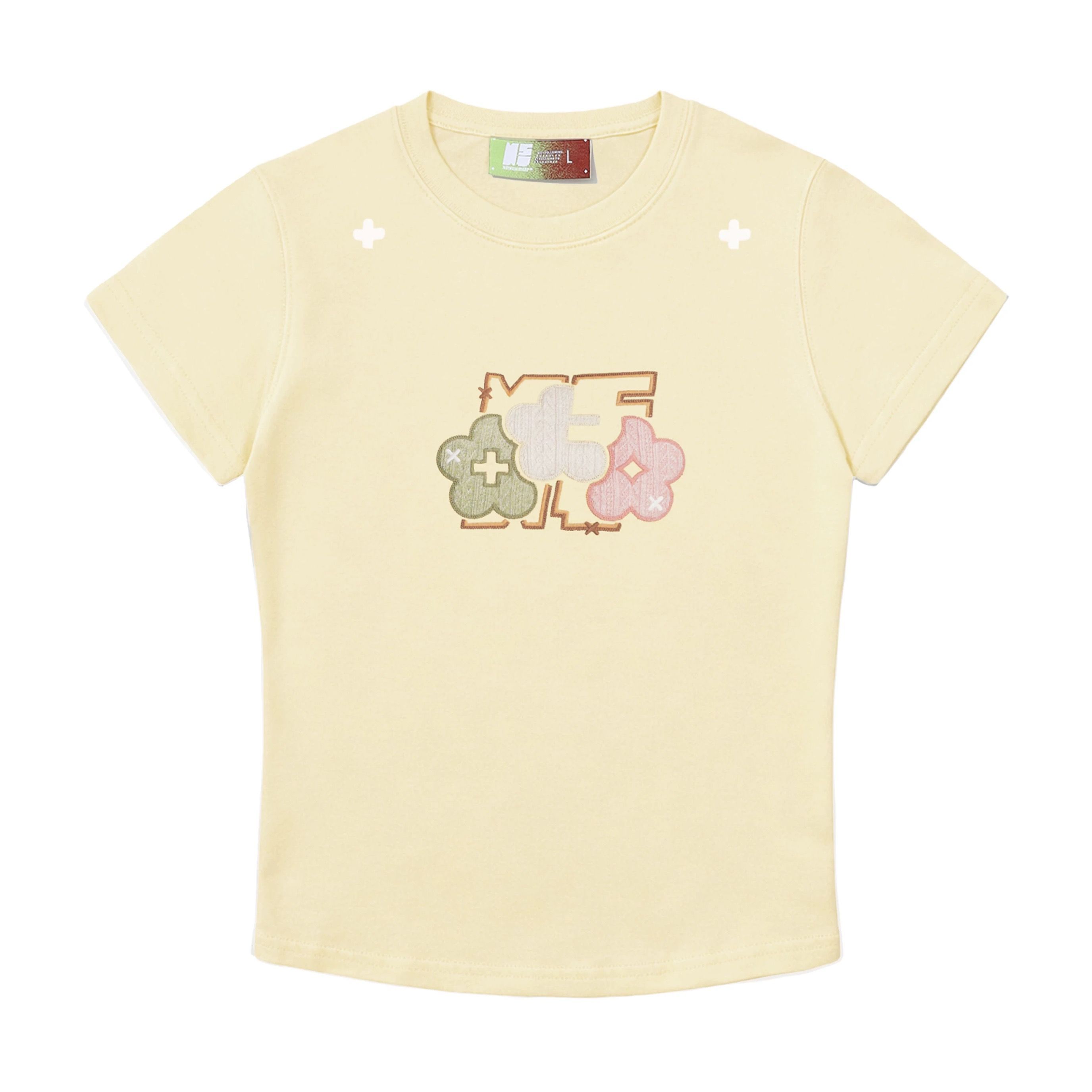 BY18530# 三本针+原版贴布刺绣19支纯棉短袖T恤女 服裝批發女裝批發服飾貨源