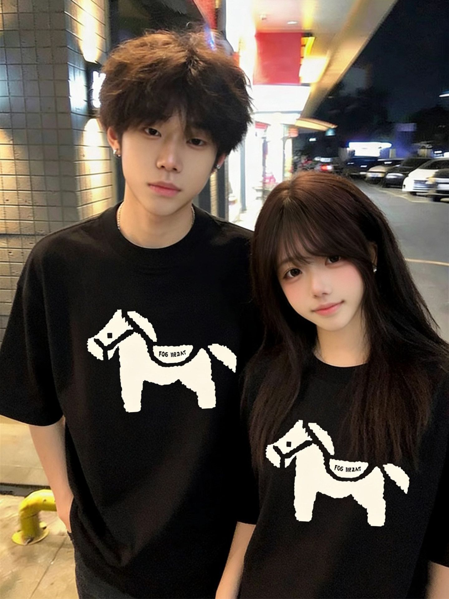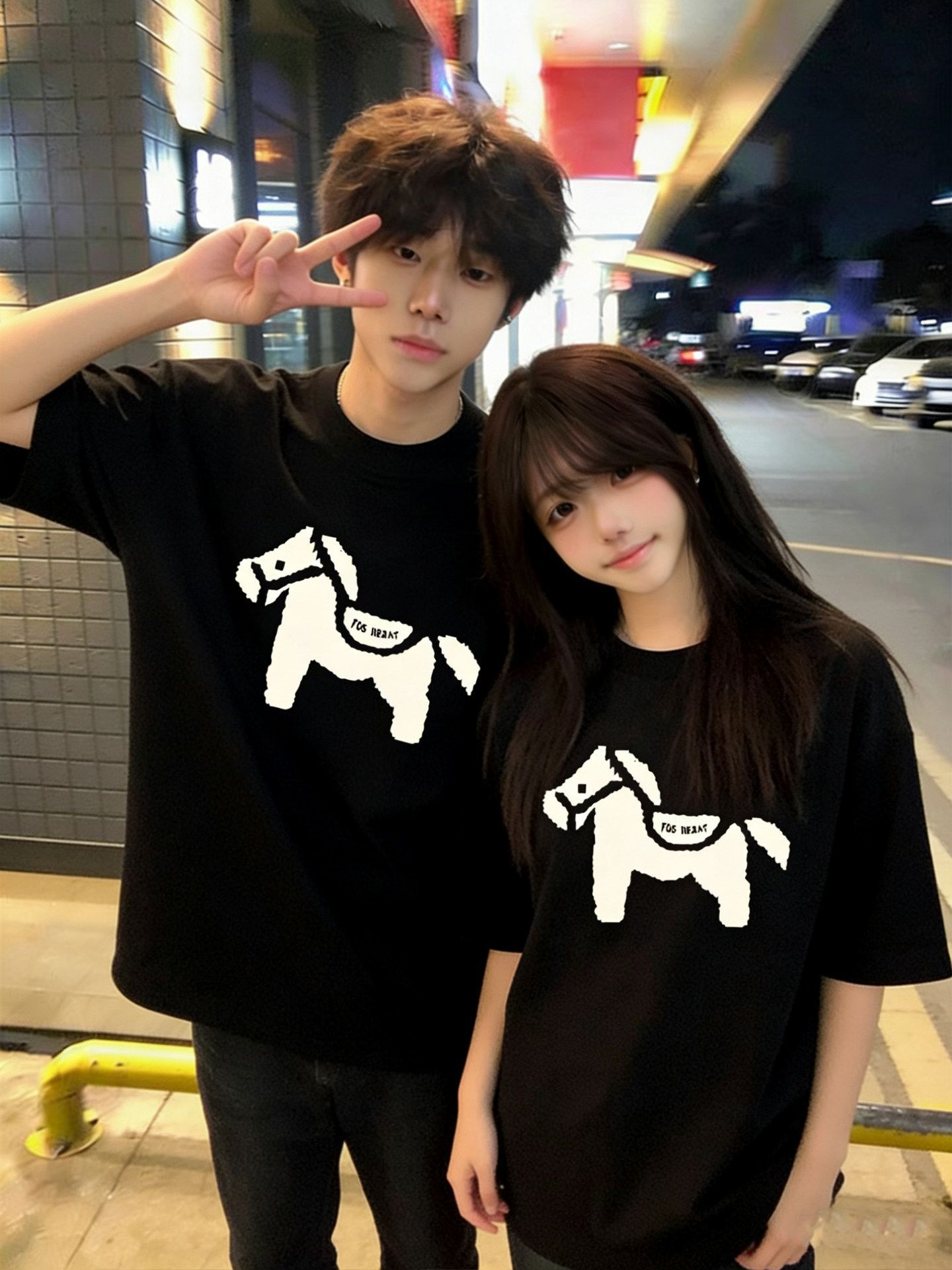 BY18531# 刺绣+印花+内里铺布纯棉短袖t恤男女 服裝批發女裝批發服飾貨源