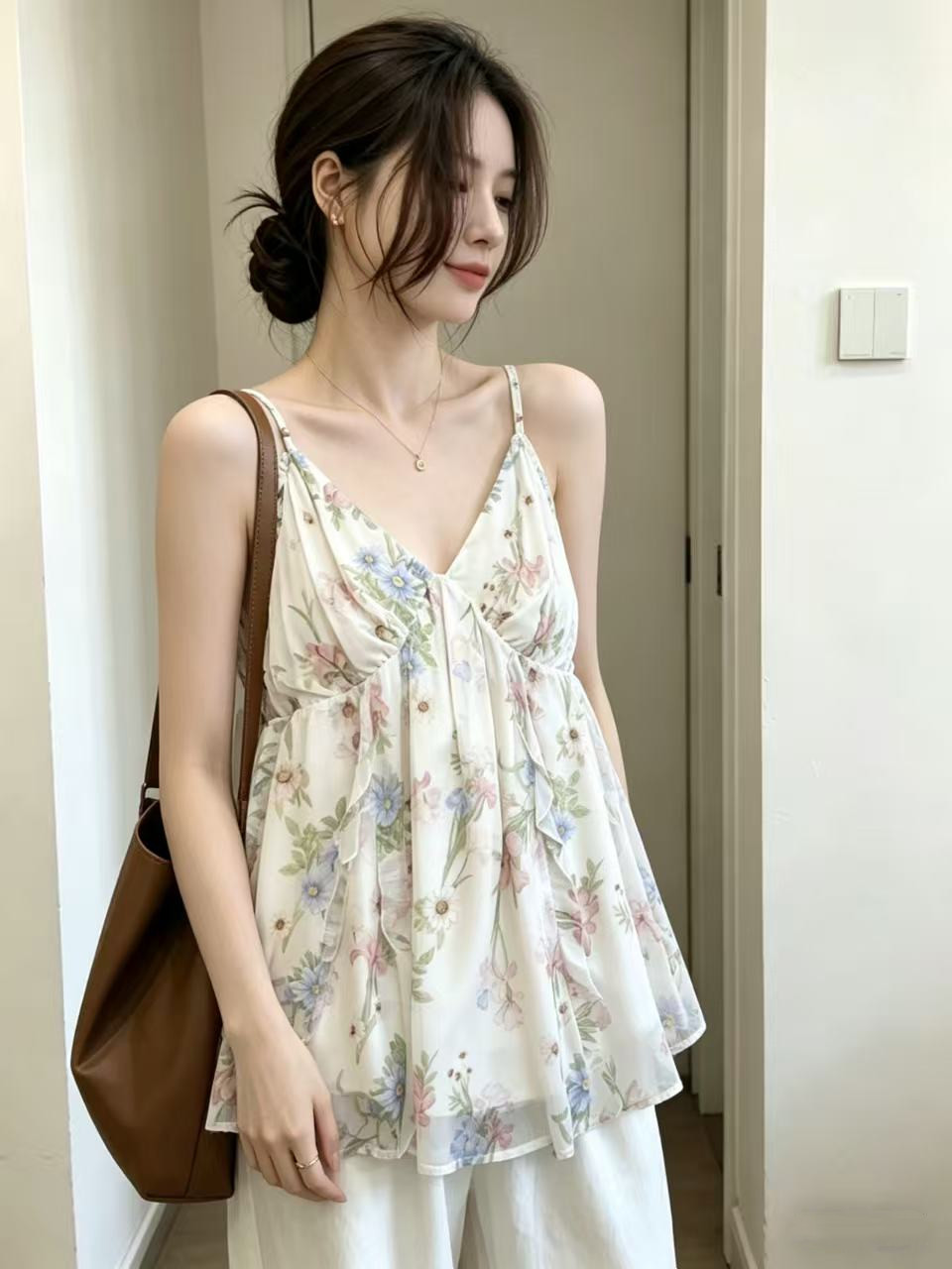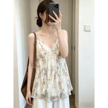 BY18558# 大码碎花吊带背心女夏季外穿韩系纯欲风V领收腰度假风上衣 服裝批發女裝批發服飾貨源