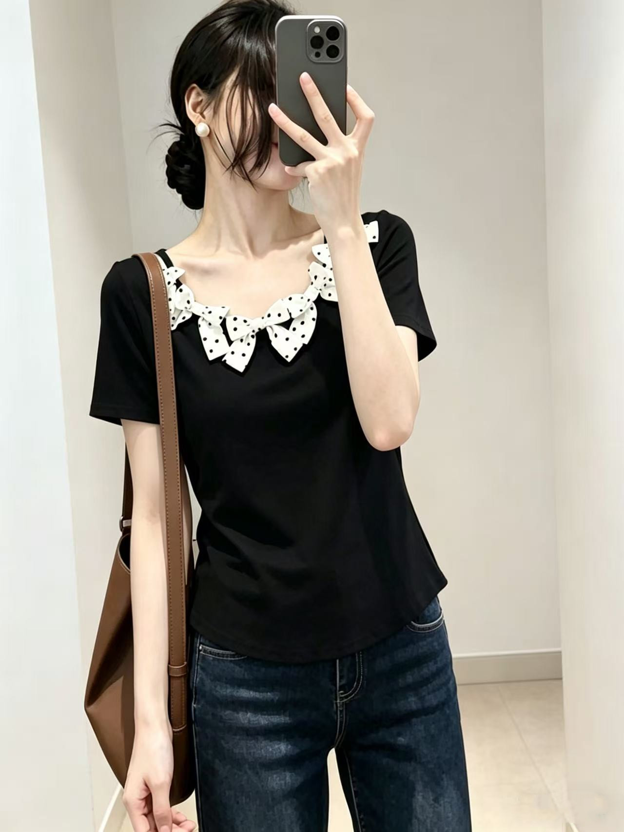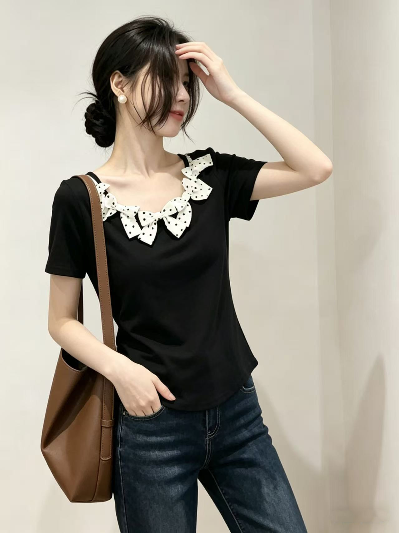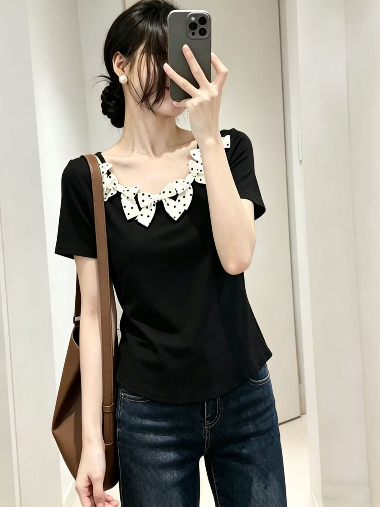 BY18560# 蝴蝶结长袖T恤女装夏季小众收腰显瘦正肩上衣 服裝批發女裝批發服飾貨源