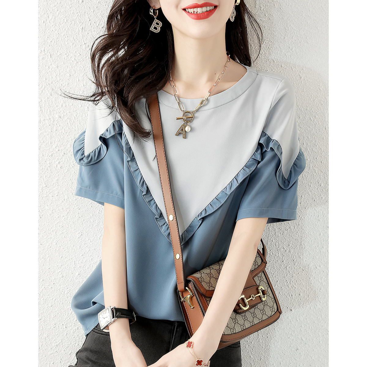 BY18561# 夏季爆款短袖女夏上衣大码女装t恤女短袖休闲小衫女式t恤 服裝批發女裝批發服飾貨源
