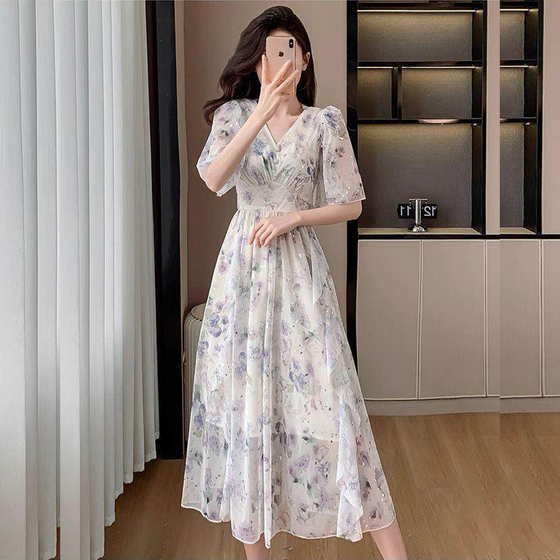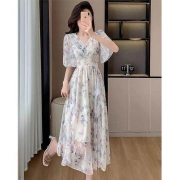BY18563# 温柔风碎花连衣裙子女装夏季新款茶歇法式高级感显瘦v领长裙 服裝批發女裝批發服飾貨源