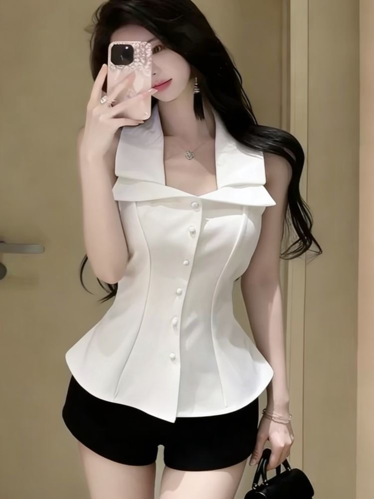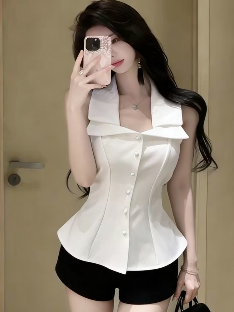 BY18578# 夏季新款休闲风小众设计感气质网红吊带上衣显瘦小香风上衣 服裝批發女裝批發服飾貨源