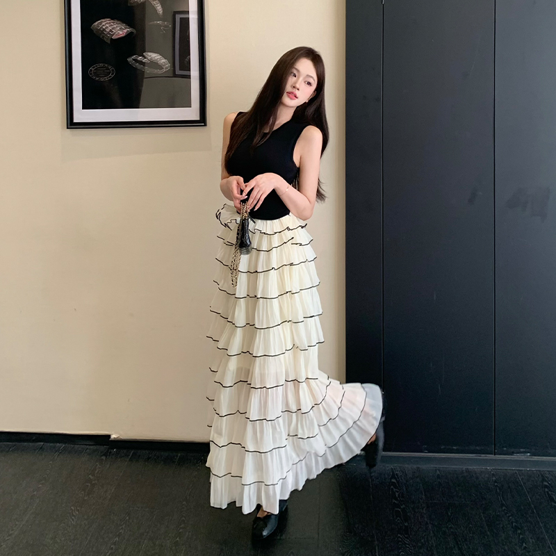 BY18940# 小香风拼接假两件蛋糕连衣裙无袖法式复古气质荷叶边长裙 服裝批發女裝批發服飾貨源