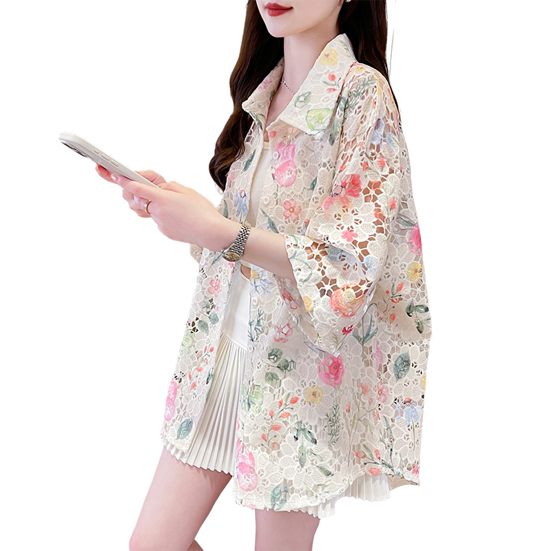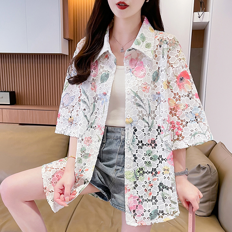 BY18953# 夏季新款美式复古设计大花镂空个性宽松衬衫短袖小众上衣女 服裝批發女裝批發服飾貨源