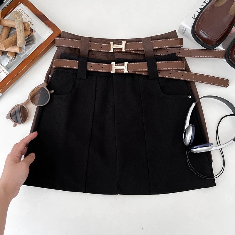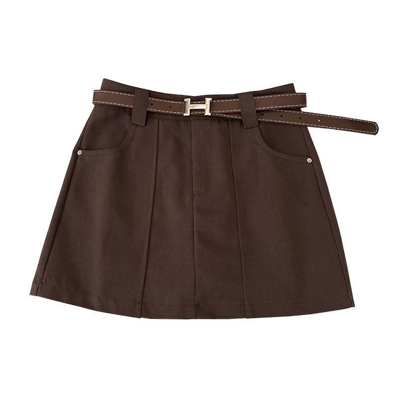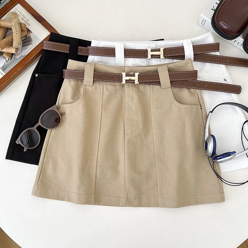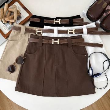 BY18972# 韩版复古时尚简约高腰显瘦半身裙防走光短裙包臀裙a字裙女配皮带 服裝批發女裝批發服飾貨源
