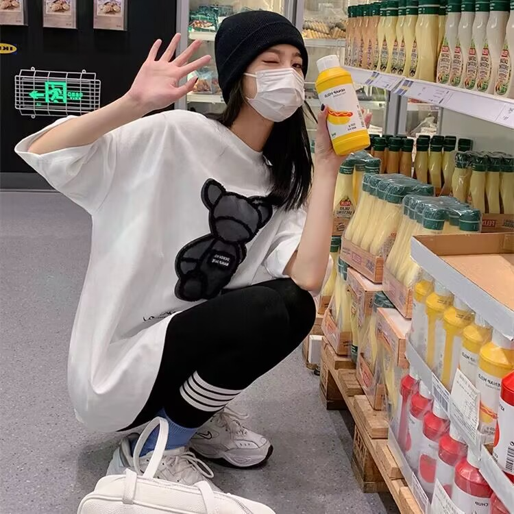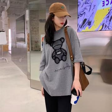 BY18982# 夏季新款宽松韩版洋气减龄显瘦小熊设计感上衣T恤女 服裝批發女裝批發服飾貨源