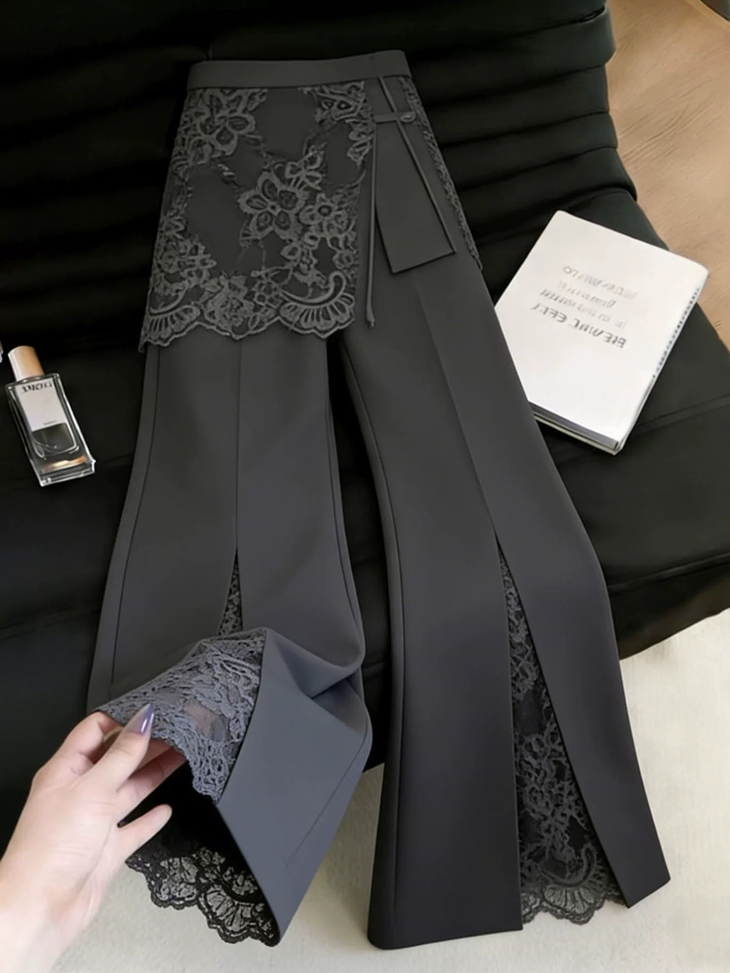 BY18984# 时尚设计感灰色蕾丝西装裤女夏季流行新款高腰显瘦阔腿裤子 服裝批發女裝批發服飾貨源