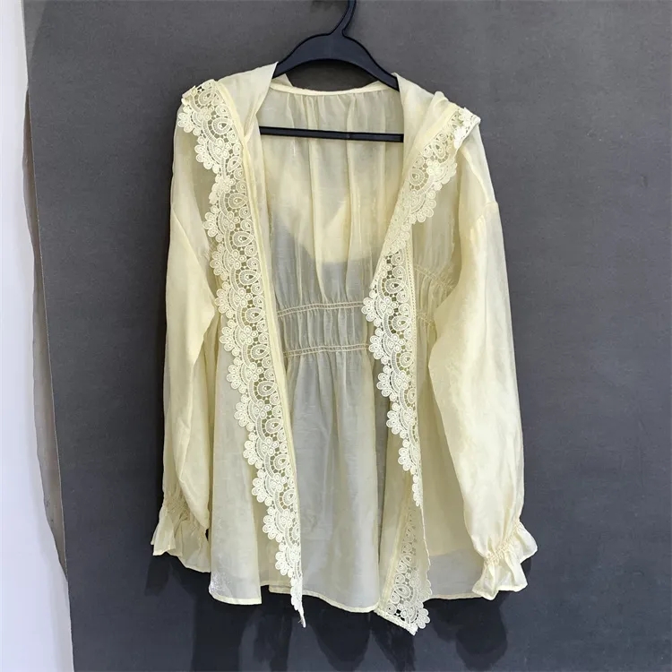 BY18990# 欧洲站法式设计感连帽蕾丝花边百搭宽松洋气减龄薄款防晒衣女开衫 服裝批發女裝批發服飾貨源